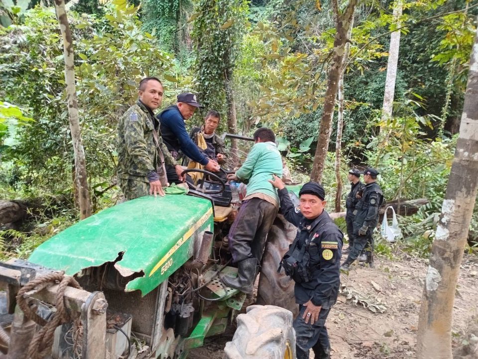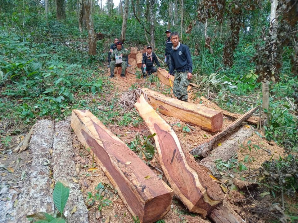 ได้ร่วมกันจับกุม นายสำราญ อายุ 56 ปี พร้อมตรวจยึดของกลาง 1.ไม้ประดู่ท่อน จำนวน 3 ท่อน ปริมาตร 0.545 ลบ.ม. คิดเป็นค่าเสียหายของรัฐเป็นเงิน 19,215 บาท (หนึ่งหมื่นเก้าพันสองร้อยสิบห้าบาทถ้วน) 2.ไม้ชิงชันแปรรูป จำนวน 10 แผ่น/เหลี่ยม ปริมาตร 1.743 ลบ.ม. คิดเป็นค่าเสียหายของรัฐเป็นเงิน 522,900 บาท (ห้าแสนสองหมื่นสองพันเก้าร้อยบาทถ้วน) 3.ยาเสพติดให้โทษประเภท ๑ เมทแอมเฟตามีน (ยาบ้า) มีอักษร WY ชนิดเม็ดสีแดง จำนวน 12 เม็ด และชนิดเม็ดสีเขียว จำนวน 1 เม็ด บรรจุอยู่ในกระปุกยาพาราเซตามอลสีขาว 4.กระเป๋าคาดเอวสีดำยี่ห้อ JINGPIN จำนวน 1 ใบ 5.รถแทรกเตอร์ยี่ห้อ John Deere สีเขียว หมายเลขเครื่อง R130874 DA8A888 จำนวน 1 คัน 6.เลื่อยโซ่ยนต์ไม่ปรากฏยี่ห้อ สีดำ พร้อมโซ่และแผ่นบังคับโซ่ความยาว 25 นิ้ว จำนวน 1 เครื่อง สถานที่เกิดเหตุ บริเวณป่าห้วยป่ากล้วย ในเขตป่าสงวนแห่งชาติป่าน้ำสาฝั่งขวาตอนขุน พื้นที่บ้านฮากฮาน ตำบลยาบหัวนา อำเภอเวียงสา