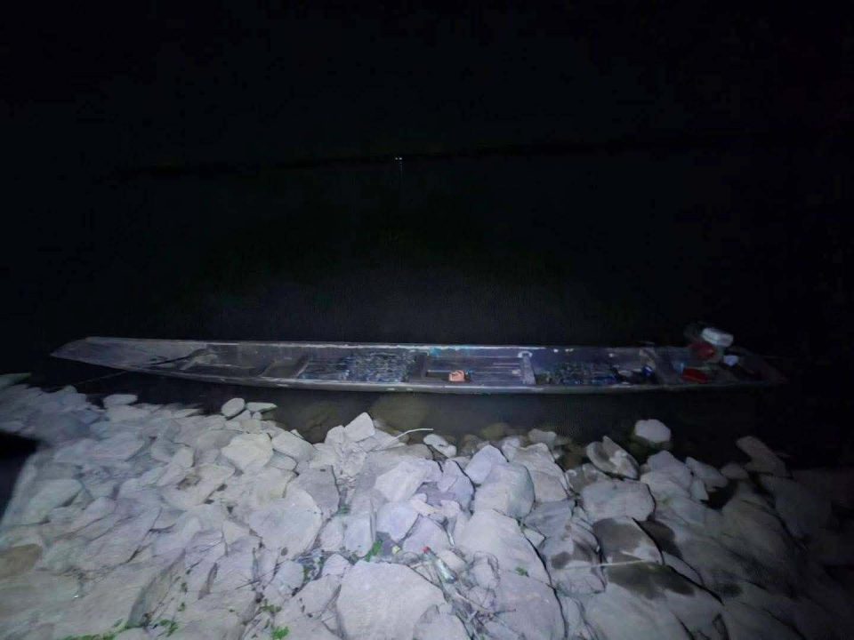 กระทั่งเวลาประมาณ 23.30 น. เจ้าหน้าที่ นรข.ได้จัดชุดลาดตระเวนทางบกทำการลาดตระเวนซุ่มเฝ้าตรวจในบริเวณพื้นที่ดังกล่าว ได้ตรวจพบเรือต้องสงสัยมีทิศทางแล่นมาจากฝั่ง สปป.ลาว เข้ามายังราชอาณาจักรไทย และตรวจพบคนบนเรือลำดังกล่าวประมาณ 3 คน โดยเมื่อเรือลำดังกล่าวเข้าเทียบแล้ว กลุ่มคนในข้างต้นได้ช่วยกันลำเลียงวัตถุคล้ายกระสอบต้องต้องสงสัยนำขึ้นจากเรือขึ้นสู่ฝั่งไทย