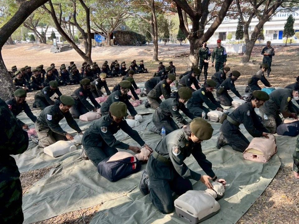 โรงพยาบาลค่ายกาวิละ โดยทีมครู ก. ร่วมกับเจ้าหน้าที่เสนารักษ์ ได้ดำเนินการสอนและถ่ายทอดความรู้ด้านการช่วยชีวิตขั้นพื้นฐาน (Basic Life Support : BLS) การใช้เครื่องกระตุกหัวใจไฟฟ้าอัตโนมัติ (Automated External Defibrillator : AED) การลำเลียงผู้ป่วย ตลอดจนการช่วยเหลือผู้บาดเจ็บในสถานการณ์ต่าง ๆ ให้แก่นักศึกษาวิชาทหารชั้นปีที่ 2 (หญิง) ในระหว่างการฝึกภาคสนาม ประจำปีการศึกษา 2568 ของหน่วยศูนย์ฝึกนักศึกษาวิชาทหาร มณฑลทหารบกที่ 33 โดยมีผู้เข้ารับการฝึกจำนวน 100 นาย ณ ศูนย์ฝึกนักศึกษาวิชาทหาร มณฑลทหารบกที่ 33 จังหวัดเชียงใหม่