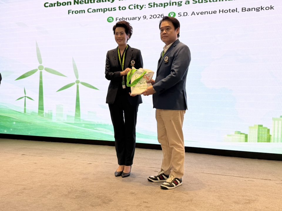 ด้าน ดร.สุรชัย สถิตคุณารัตน์ ผู้อำนวยการ สำนักงานสภานโยบายการอุดมศึกษา วิทยาศาสตร์ วิจัยและนวัตกรรมแห่งชาติ (สอวช.) ได้ร่วมแลกเปลี่ยนมุมมองเชิงนโยบายเกี่ยวกับบทบาทของสถาบันการศึกษาในการสนับสนุนเป้าหมาย Carbon Neutrality และ Net Zero ของประเทศ พร้อมเน้นย้ำความสำคัญของการเชื่อมโยงงานวิชาการกับกรอบนโยบายระดับชาติ เพื่อให้เกิดผลลัพธ์ที่สามารถขยายผลได้ในระยะยาว