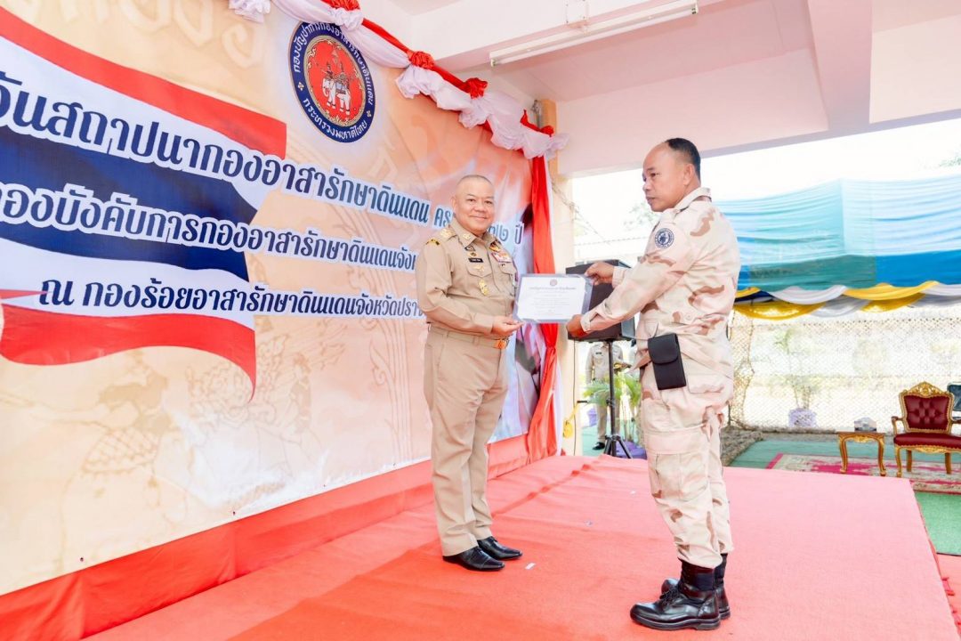 ณ กองร้อยอาสารักษาดินแดนปราจีนบุรีที่ 1 ต.ไม้เค็ด อ.เมืองปราจีนบุรี จ.ปราจีนบุรี โดยมีนายกองโทธงชัย บุตรวงษ์ ผู้บังคับกองร้อยอาสารักษาดินแดน อ.เมืองปราจีนบุรีที่ 2 พร้อมปลัดอำเภอฝ่ายความมั่นคง และสมาชิก อส.อ.เมืองปราจีนบุรีที่ 2 เข้าร่วมพิธีฯ ด้วย