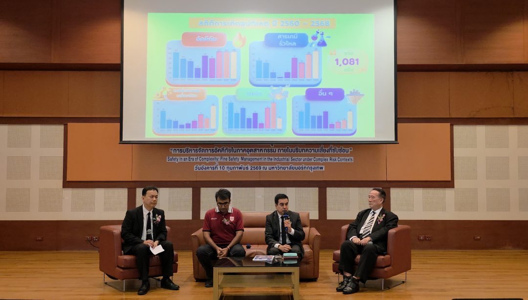 เมื่อเวลา 10.00 น. วันที่ 10 กุมภาพันธ์ 2569 มหาวิทยาลัยนอร์ทกรุงเทพ ร่วมกับ กรมโรงงานอุตสาหกรรม สมาคมวิศวกรรมความปลอดภัย และสถาบันส่งเสริมความปลอดภัย อาชีวอนามัย และสภาพแวดล้อมในการทำงาน (สสปท.) จัดงานสัมมนาวิชาการครั้งสำคัญในหัวข้อ “ความปลอดภัยในยุคที่ซับซ้อน: การบริหารจัดการอัคคีภัยในภาคอุตสาหกรรม ภายใต้บริบทความเสี่ยงที่ซับซ้อน” (Safety in an Era of Complexity) เพื่อติดอาวุธทางปัญญาให้ผู้ประกอบการและเจ้าหน้าที่ความปลอดภัย (จป.) รับมือกับความท้าทายใหม่ในยุคเทคโนโลยีเปลี่ยนโลก ณ มหาวิทยาลัยนอร์ทกรุงเทพ วิทยาเขตรังสิต จ.ปทุมธานี โดยมี ผศ.ดร.สิทธิพร ประวัติรุ่งเรือง อธิการบดี พร้อมด้วย ผศ.ดร.ปัทมา รูปสุวรรณกุล รองอธิการบดีอาวุโส ได้ให้การต้อนรับ นายพรยศ กลั่นกรอง อธิบดีกรมโรงงานอุตสาหกรรม เป็นประธานในพิธีเปิด ซึ่งการรวมตัวครั้งนี้ถือเป็นก้าวสำคัญในการเชื่อมโยงองค์ความรู้จากรั้วมหาวิทยาลัยสู่การปฏิบัติจริงในโรงงานอุตสาหกรรมทั่วประเทศ