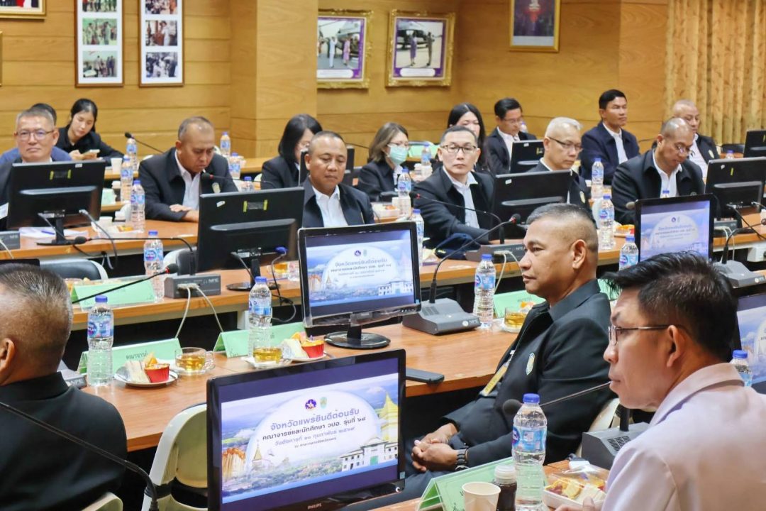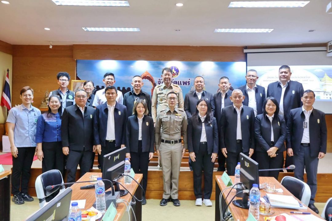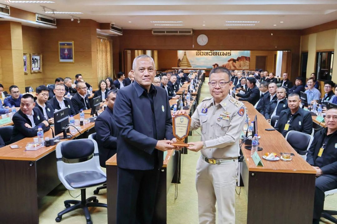 ที่ห้องประชุมจดหมายเหตุ ชั้น 2 ศาลากลางจังหวัดแพร่ นายสมชัย เลิศประสิทธิพันธ์ ให้การต้อนรับ พลตรีกิตติภัค ทองธีรธรรม ผู้อำนวยการสำนักวิทยาการและความมั่นคง วิทยาลัยป้องกันราชอาณาจักร สถาบันวิชาการป้องกันประเทศ คณาจารย์และนักศึกษาวิทยาลัยป้องกันราชอาณาจักร (วปอ.) รุ่นที่ 28 ที่เดินทางมาศึกษาดูกิจการและศึกษาภูมิประเทศภาคเหนือ ในพื้นที่จังหวัดแพร่