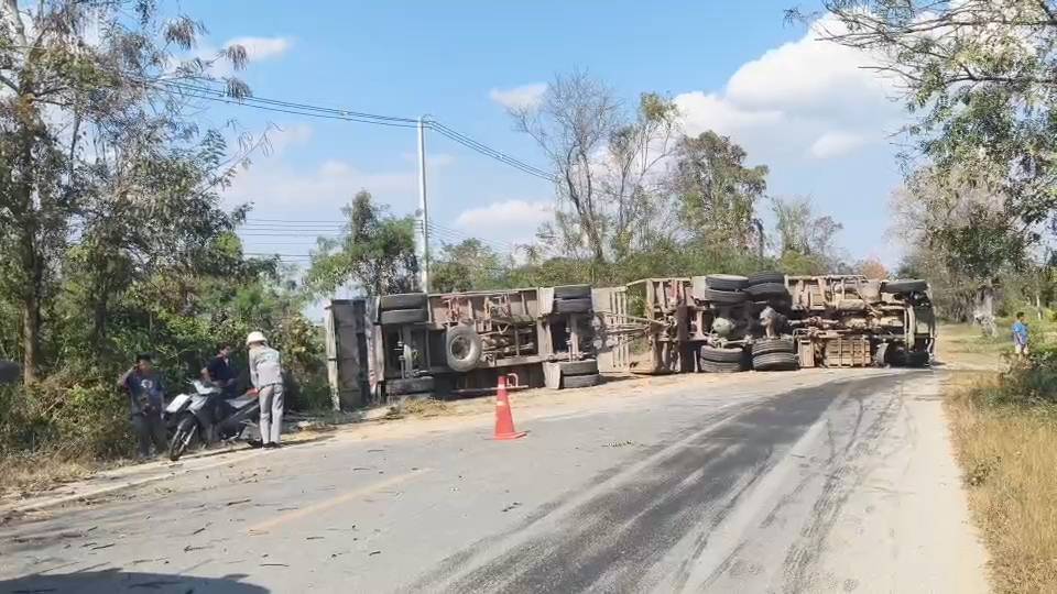 เกิดอุบัติเหตุรถบรรทุกพ่วง 18 ล้อบรรทุกหินเสียหลักพลิกตะแคงขวางถนน บริเวณบ้านสันโค้ง หมู่ 1 ต.สันโค้ง อ.ดอกคำใต้ จ.พะเยา ส่งผลให้หินที่บรรทุกมาเทกระจาดกระจายเต็มพื้นผิวจราจรทั้งสองเลน ขณะที่กระจกหน้ารถแตกกระเด็น และมีน้ำมันรั่วไหลเป็นทางยาว การสัญจรผ่านเส้นทางดังกล่าวเป็นไปด้วยความยากลำบากเจ้าหน้าที่องค์การบริหารส่วนตำบลสันโค้งต้องปิดกั้นถนน