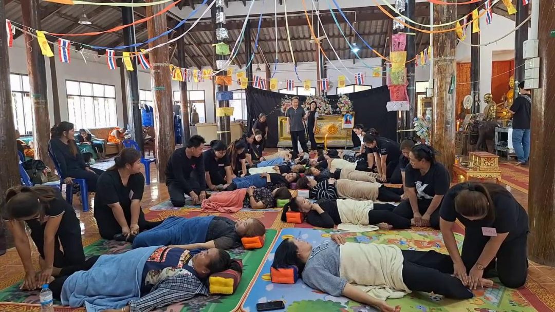 โดยมีนายวีระ แบ่งเพชร อาจารย์วิทยาลัยชุมชนอุทัยธานี กล่าวว่า ผู้ตายนั้นได้ไปเรียนนวดเท้า ที่วิทยาชุมชนอุทัยธานี เป็นรุ่นที่ 1 รุ่นแรก พอเข้าได้เสียชีวิต ทางลูกสาวของผู้ตายยากให้มีการนวดหน้าศพขึ้น เพื่อรำลึกผู้ตายที่ประกอบอาชีพหมดนวดมาหลายปี ซึ่งวันนี้ได้นำหมอนวดมาทั้งหมด 13 คน ที่มานวดหน้าศพ ให้กับผู้ที่มาร่วมงาน ดังกล่าว