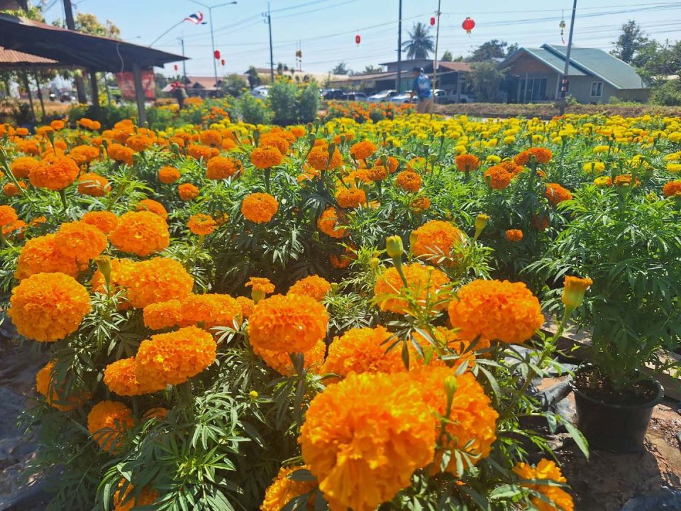 นายพิชิต บุญขันธ์ อายุ 54 ปี เกษตรกรผู้ปลูกดาวเรือง พื้นที่บ้านศูนย์ไหม ต.มุกดาหาร อ.เมือง จ.มุกดาหาร ซึ่งเป็นแหล่งปลูกดอกดาวเรืองขนาดใหญ่ เปิดเผยว่า ตอนนี่ดอกดาวเรืองกำลังออกดอกสวยงามและสดใส ใกล้ตรุษจีนพอดี เริ่มปลูกตั้งแต่เดือนเดือนพฤศจิกายน ขอเชิญชวนมาชม มาซื้อได้ในช่วงเทศกาลตรุษจี สวนอยู่ที่บ้านสวนไหม (ใกล้บริษัทแลคตาซอย ถนนมุกดาหาร – คำชะอี) ตำบลมุก อำเภอเมือง จังหวัดมุกดาหาร โดยขายกระถางเล็ก 40 บาท กระถางกลาง 250 บาท กระถางจัมโบ้ 350 บาทแล้วแต่ขนาด โดยเฉพาะช่วงตรุษจีนมาชมมาซื้อไปเพื่อไหว้เจ้า ไหว้บรรพบุรุษ และตกแต่งบ้านเรือน เพื่อความเป็นสิริมงคล ปีนี้ดาวเรืองขายดีกว่าทุกปี ส่วนมากลูกค้าจากประเทศเพื่อนบ้านจากลาว และเวียดนาม ในช่วงเทศกาลตรุษจีน ส่วนราคาก็มีราคาส่ง สั่งหลายต้น ถือว่าเป็นอาชีพที่มีรายได้ทุกปี ช่วงปีใหม่และช่วงตรุษจีนจะขายดีมาก ขายประมาณปี 10,000 ต้น มี 3 สี สีเหลือง สีเหลืองทอง และสีส้ม ปกติดาวเรืองชอบแสงแดด