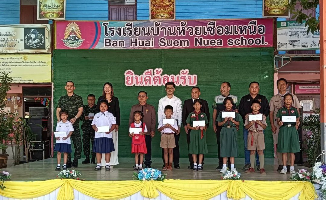 จากนั้นคณะได้เดินทางไปยัง โรงเรียนบ้านห้วยเชื่อมเหนือ ตำบลไคสี อำเภอเมืองบึงกาฬ จัดกิจกรรม CSR มอบทุนการศึกษา จำนวน 15 ทุน เพื่อสนับสนุนโอกาสทางการเรียนรู้ของนักเรียนในพื้นที่ สร้างขวัญกำลังใจแก่เยาวชนและครอบครัว ในช่วงบ่าย คณะลงพื้นที่ตรวจเยี่ยม ศูนย์เรียนรู้การเพิ่มประสิทธิภาพการผลิตสินค้าเกษตร (ศพก.) หลัก ตำบลโคกก่อง ติดตามการดำเนินงานตามแผนหมู่บ้านเข้มแข็งคู่ขนาน โดยส่งเสริมการน้อมนำหลักปรัชญาเศรษฐกิจพอเพียงมาประยุกต์ใช้ในการสร้างอาชีพและรายได้อย่างยั่งยืน ก่อนปิดภารกิจด้วยการเยี่ยมชมกิจการชุมชนในพื้นที่ตำบลชัยพร