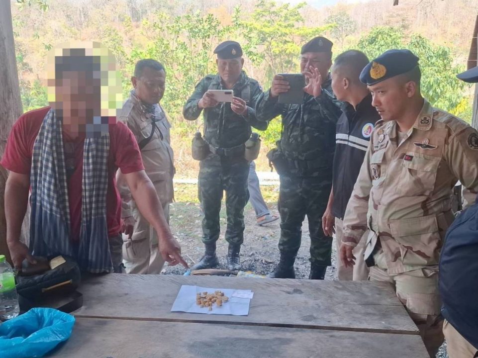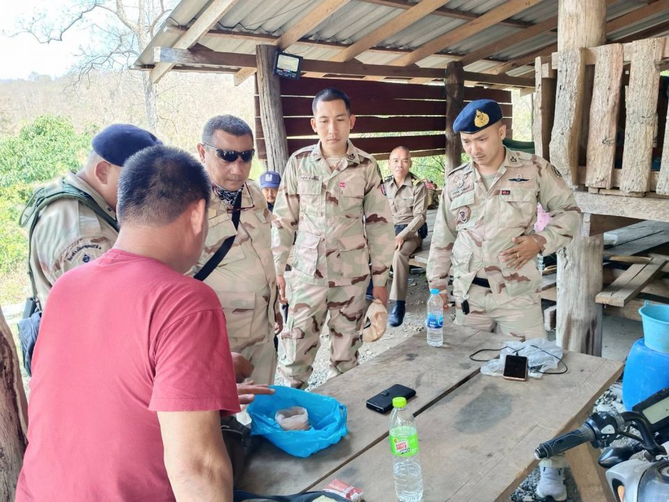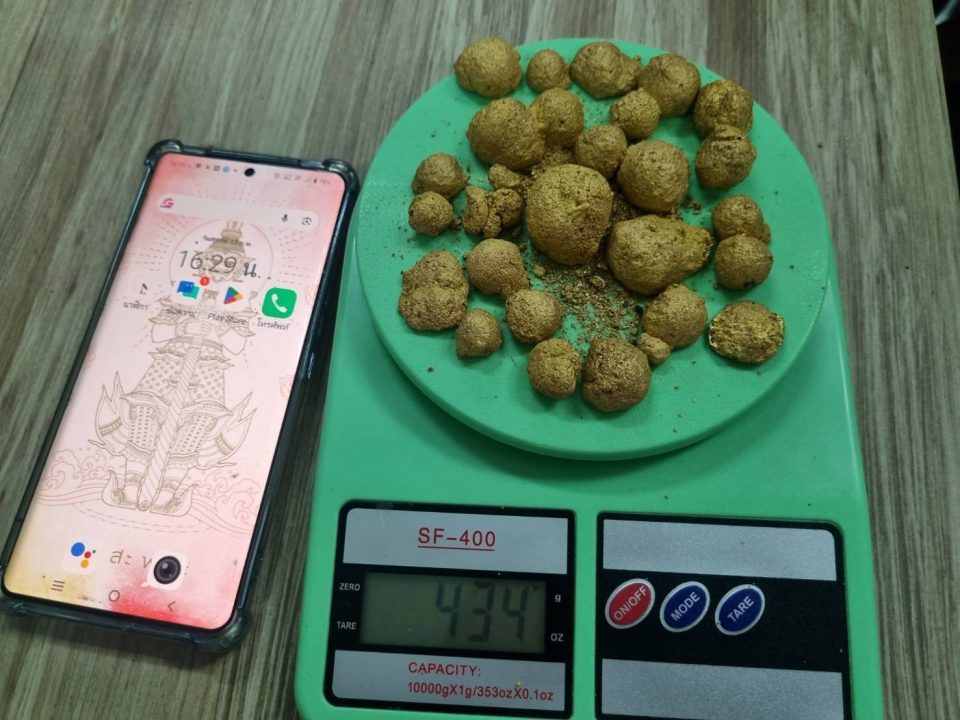 ต่อมาเวลาประมาณ 13.30 น.คณะเจ้าหน้าที่พบชายลักษณะต้องสงสัยว่าจะเป็นต่างด้าวชาวพม่า เดินอยู่ที่บริเวณช่องทางธรรมชาติดงสับปะรด หมู่ 12 ต.บ้านเก่า อ.เมือง จ.กาญจนบุรี เจ้าหน้าที่จึงเรียกให้หยุดเพื่อขอตรวจสอบเอกสารและตรวจค้นหาสิ่งผิดกฎหมาย ทราบชื่อต่อมาคือนายบอย วงไว้ หรือไดมอล เป็นชาวพม่า บัตรขึ้นต้นด้วยเลข 6 อายุ 54 ปี และจากการตรวจค้นพบวัตถุเป็นก้อนสีเหลืองคล้ายแร่ทองคำ บรรจุในถุงพลาสติกเก็บเอาไว้ในเป้ลักษณะกลมขนาดต่างๆ กว่า 25 ก้อน น้ำหนักรวม 434 กรัม
