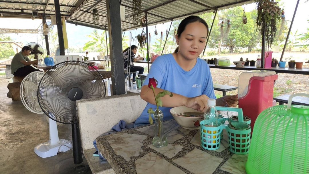 จากนั้นผู้สื่อข่าวได้ไปสอบถามและได้พูดคุยกับนางสาวธารินี สิงหพันธุ์ อายุ 46ปั เจ้าของร้านแม่ค้าขายก๋วยเตี๋ยวได้เล่าให้ฟังว่าตัวเองเปิดร้านมาตั้งแต่สมัยรุ่นแม่ได้ 6 ปีแล้วส่วนแจกันดอกไม้ก็ตั้งมานานแล้วที่ร้านมีทั้งหมด 10 โต๊ะก็จะตั้งไว้ทุกโต๊ะเพื่อให้ลูกค้าได้ชื่นชมดอกไม้ เพราะว่ามันแปลกดีทีแรกก็ไม่ได้คิดอะไรมันเป็นที่ดูดน้ำแต่เพื่อนสะกิดตนบอกว่าเอ๊ะทำไมหน้าตามันดูแปลกๆแล้วก็มองหน้าเราแล้วก็ยิ้มเราก็เลยเอามาทำไปแจกันดอกไม้ประดับบนโต๊ะอาหารซะเลยซึ่งวันนี้เป็นวันสำคัญอย่างวันวาเลนไทน์มีลูกค้าหลายคนที่แอบนั่งอมยิ้มแล้วก็พิจารณาเจอกันดอกไม้บางคนก็หยิบยื่นให้กันบางคนก็ถ่ายรูปมันก็คงจะเป็นเรื่องแปลกของเขาแต่สำหรับพี่มันคงไม่แปลกเพราะว่าพี่โสด