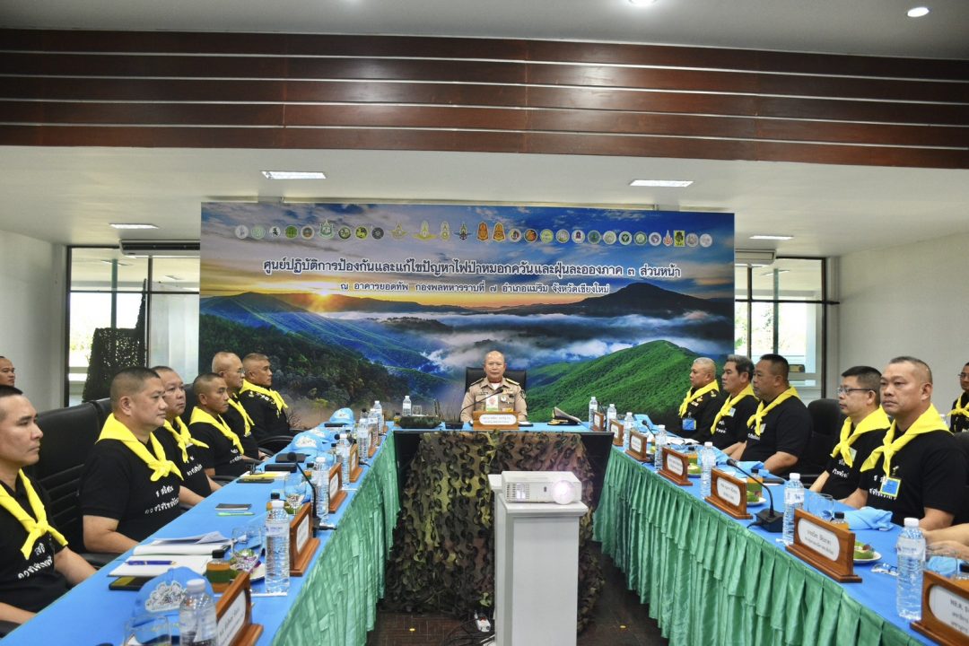 พลเรือเอก คณีพล สงเจริญ ผู้อำนวยการศูนย์อำนวยการใหญ่จิตอาสาพระราชทาน ลงพื้นที่จังหวัดเชียงใหม่ ติดตามผลการปฏิบัติการแก้ไขปัญหาไฟป่าหมอกควันและฝุ่นละอองศูนย์อำนวยการจิตอาสาภัยพิบัติ ภาค 3 (ไฟป่าหมอกควัน) โดยมี พลโท วรเทพ บุญญะ แม่ทัพภาคที่ 3 /ผู้อำนวยการศูนย์อำนวยการจิตอาสาพระราชทานภาค 3 ในฐานะ ผู้อำนวยการศูนย์ปฏิบัติการป้องกันและแก้ไขปัญหาไฟป่าหมอกควันและ ฝุ่นละอองภาค 3 พร้อมด้วย นายรัฐพล นราดิศร ผู้ว่าราชการจังหวัดเชียงใหม่, พลตรี ธงชัย มีอนันต์ เลขาธิการกองอำนวยการรักษาความมั่นคงภายในภาค 3/ เลขานุการศูนย์ปฏิบัติการป้องกันและแก้ไขปัญหาไฟป่าหมอกควันและ ฝุ่นละอองภาค 3, ส่วนราชการ หน่วยงานที่เกี่ยวข้อง ร่วมติดตามคณะลงพื้นที่ ณ อาคารยอดทัพ กองพลทหารราบที่ 7 อำเภอแม่ริม จังหวัดเชียงใหม่