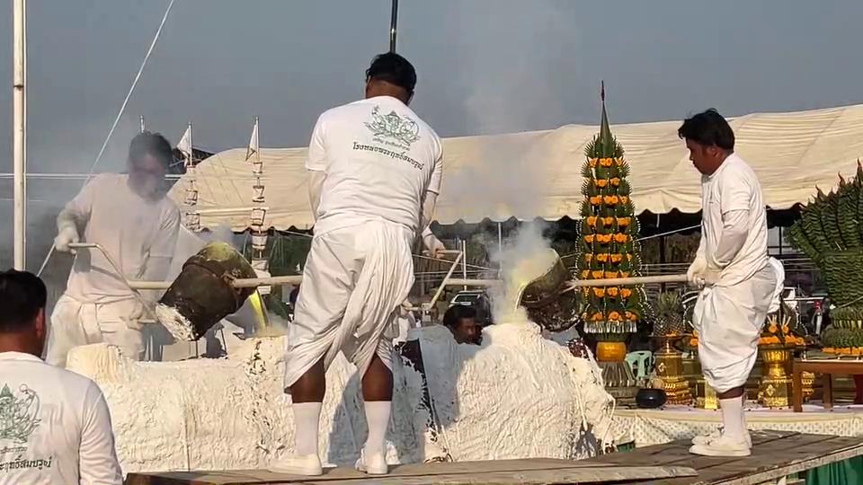 บรรยากาศภายใน วัดหนองกระดี่ (เก่า) ต.หนองยายดา อ.ทัพทัน จ.อุทัยธานี เมื่อเวลา 16.00 น. วันที่ 15 ก.พ.69 คลาคล่ำไปด้วยพุทธศาสนิกชนและนักท่องเที่ยวที่เดินทางมาร่วมพิธีเททองหล่อฐาน หลวงพ่อเคลือบ องค์ใหญ่ ซึ่งมีขนาดหน้าตักกว้าง 12 เมตร สูง 15 เมตร โดดเด่นสง่างาม ขณะนี้การติดตั้งคืบหน้าใกล้แล้วเสร็จ โดยตั้งเป้านำฐานมาติดตั้งสมบูรณ์ในช่วงปีใหม่ 2570 ใช้งบก่อสร้างรวมราว 30 ล้านบาท จากพลังศรัทธาของประชาชน ภายในงานจัดเต็มทั้งพิธีสงฆ์และพิธีพราหมณ์ ท่ามกลางสาธุชนที่มาร่วมเป็นสักขีพยานอย่างเนืองแน่น เสียงสวด เสียงฆ้องกลอง และเปลวไฟจากการเททอง สะท้อนแรงศรัทธาที่หลอมรวมเป็นหนึ่งเดียว