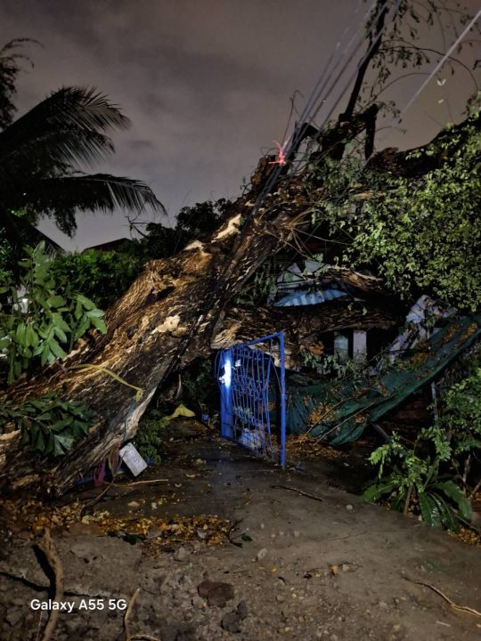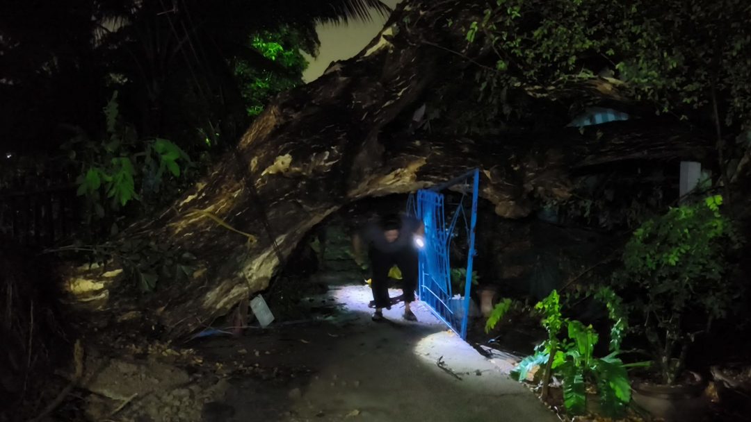 นายสมชาย กล่าวต่อว่า ช่วงเกิดเหตุมีหลานอยู่ภายในบ้านเพียง 2 คน กำลังนั่งดูทีวีอยู่ต้นไม้ล้มมาเฉียดหลังเพียงนิดเดียวโชคดีที่ไม่โดน เบื้องต้นตรวจสอบทรัพย์สินที่เสียหายพบว่า หลังคาบ้านและรถยนต์ได้รับความเสียหาย กระจกแตกหลายบาน แต่โชคดีไม่มีผู้ใดได้รับบาดเจ็บ ตนจึงรีบแจ้งเจ้าหน้าที่การไฟฟ้าเข้ามาตัดไฟก่อน เนื่องจากกังวลเรื่องความปลอดภัย และเตรียมแจ้งเทศบาลให้เข้ามาดำเนินการตัดและรื้อถอนต้นไม้ในวันพรุ่งนี้ เนื่องจากต้นไม้ล้มทับตัวบ้านและอยู่ในสภาพอันตราย ขณะที่เจ้าของบ้านไม่สามารถพักอาศัยภายในบ้านได้ในขณะนี้ ผู้สื่อข่าวพยายามติดต่อสอบถามแต่ไม่พบเจ้าของบ้าน ทราบว่าได้ไปอาศัยบ้านญาติซึ่งอยู่บริเวณใกล้เคียงเป็นการชั่วคราว ส่วนมูลค่าความเสียหายทั้งหมดอยู่ระหว่างการประเมินต่อไป