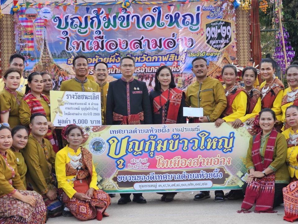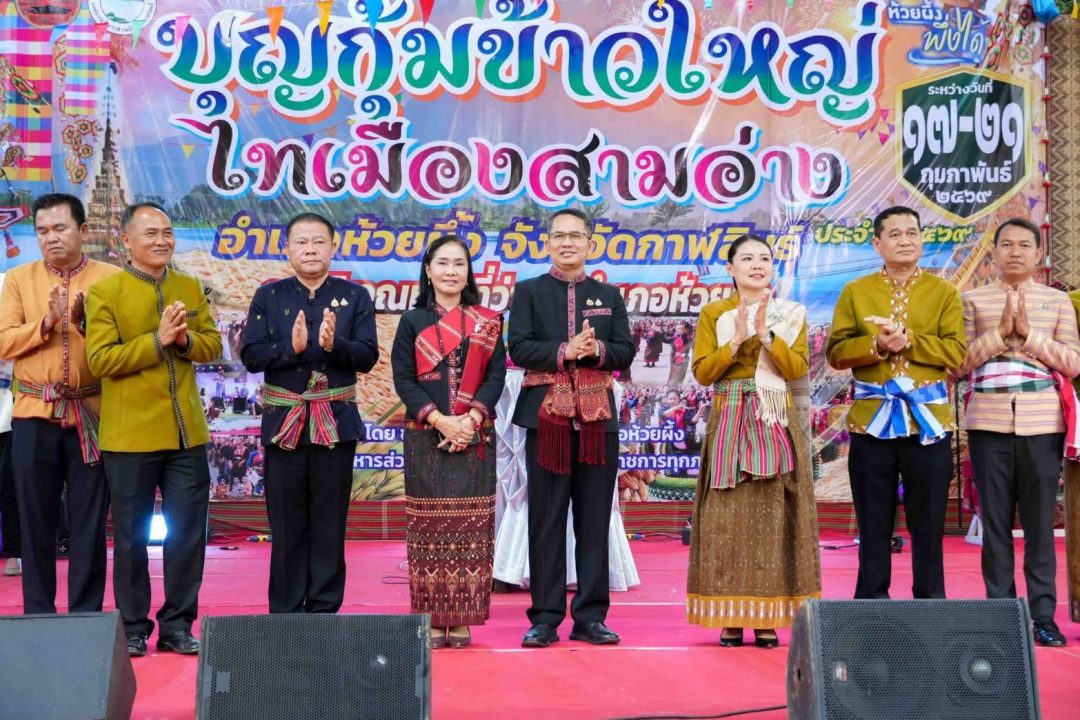 ผู้ว่าฯ กาฬสินธุ์ เปิดงานประเพณี “บุญกุ้มข้าวใหญ่ ไทเมืองสามอ่าง” อำเภอห้วยผึ้ง จังหวัดกาฬสินธุ์ ประจำปี 2569 สืบสานประเพณีอีสาน ตามฮีตสิบสองคองสิบสี่ ที่เวทีกลางหน้าที่ว่าการอำเภอห้วยผึ้ง จ.กาฬสินธุ์ นายสุวรรธณ์ เข็มธนเพ็ชร ผู้ว่าราชการ จ.กาฬสินธุ์ เป็นประธานเปิดงานประเพณี “บุญกุ้มข้าวใหญ่ ไทเมืองสามอ่าง” ประจำปี 2569 โดยมีนางวรชาดา เข็มธนเพ็ชร นายกเหล่ากาชาด จ.กาฬสินธุ์ นายสันติ จัตุพันธ์ ปลัด จ.กาฬสินธุ์ นายณัฐพล เพียรภายลุน นายอำเภอห้วยผึ้ง นางเฉลิมขวัญ หล่อตระกูล นายกอบจ.กาฬสินธุ์ พร้อมด้วยหัวหน้าส่วนราชการ และประชาชน เข้าร่วมพิธีเปิดงาน
