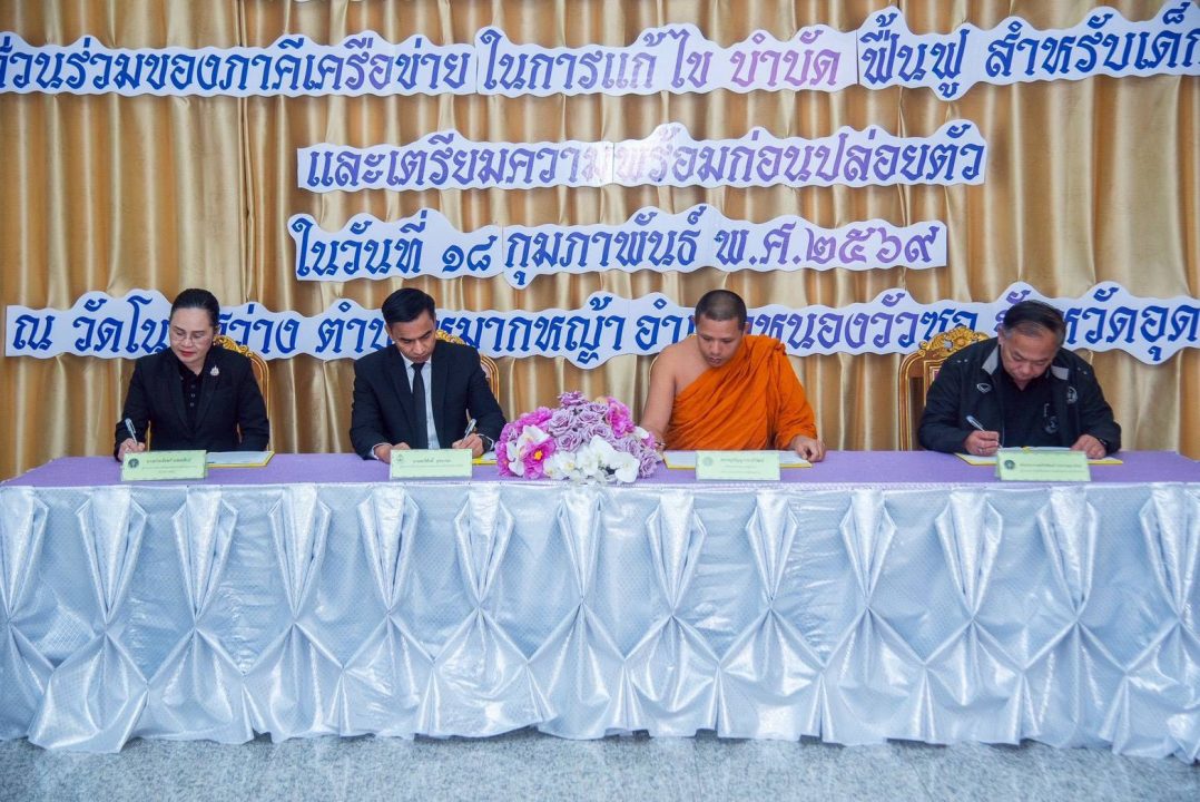 ที่อาคารอทิตยาวิชาลัย วัดโนนสว่าง ตำบลหมากหญ้า อำเภอหนองวัวซอ จังหวัดอุดรธานี จัดพิธีลงนามบันทึกข้อตกลงความร่วมมือ (MOU) ว่าด้วยการมีส่วนร่วมของเครือข่ายในการแก้ไข บำบัด ฟื้นฟูเด็กและเยาวชน และการเตรียมความพร้อมก่อนปล่อยตัว เพื่อยกระดับการดำเนินงานด้านการพัฒนาและคืนคนดีสู่สังคมอย่างเป็นระบบความร่วมมือดังกล่าวเป็นการบูรณาการระหว่าง ศาลเยาวชนและครอบครัวจังหวัดกาฬสินธุ์, ศูนย์ฝึกและอบรมเด็กและเยาวชนขอนแก่น และ สถานพินิจและคุ้มครองเด็กและเยาวชนจังหวัดกาฬสินธุ์ โดยมี พระครูปัญญาวราภิวัฒน์ รักษาการแทนเจ้าอาวาสวัดโนนสว่าง นายทวีศักดิ์ สุรนารถ ผู้พิพากษาหัวหน้าศาลเยาวชนและครอบครัวจังหวัดกาฬสินธุ์ พันจ่าอากาศตรีรพีพงศ์ ประธานธุรารักษ์ ผู้อำนวยการศูนย์ฝึกและอบรมเด็กและเยาวชนขอนแก่น และนางปานจันทร์ มงคลศิลป์ ผู้อำนวยการสถานพินิจและคุ้มครองเด็กและเยาวชนจังหวัดกาฬสินธุ์ ร่วมลงนาม