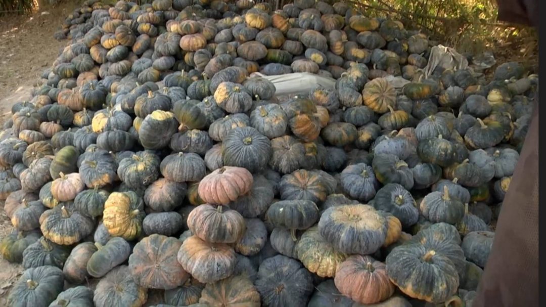 ที่ท้ายหมู่บ้าน บ้านบัว ม.5 ต.กุดแฮด อ.กุดบาก จ.สกลนคร เกษตรกรผู้ปลูกฟักทอง นำลูกฟักทองจากสวนออกมากองรวมกันประมาณ 40 ตัน เพื่อขายให้กับพ่อค้าคนกลาง ในราคากิโลกรัมละ 1 บาท ไปจนถึงสูงสุดคือกิโลกรัมละ 5-6 บาท ซึ่งฟักทองเหล่านี้ถูกเก็บออกมาจากไร่ ที่ผู้ปลูกกว่า 20 รายนำมาขาย ไม่ว่าจะเป็นขายปลีกหรือขายส่งราคาเดียวกัน โดยมีฟักทองราคาถูกที่สุด ก.ก.ละ 1 บาท เนื่องจากถูกแดดเลียจนผิวเปลี่ยนสี ทำได้อย่างเดียวคือซื้อไปให้โค กระบือเท่านั้น