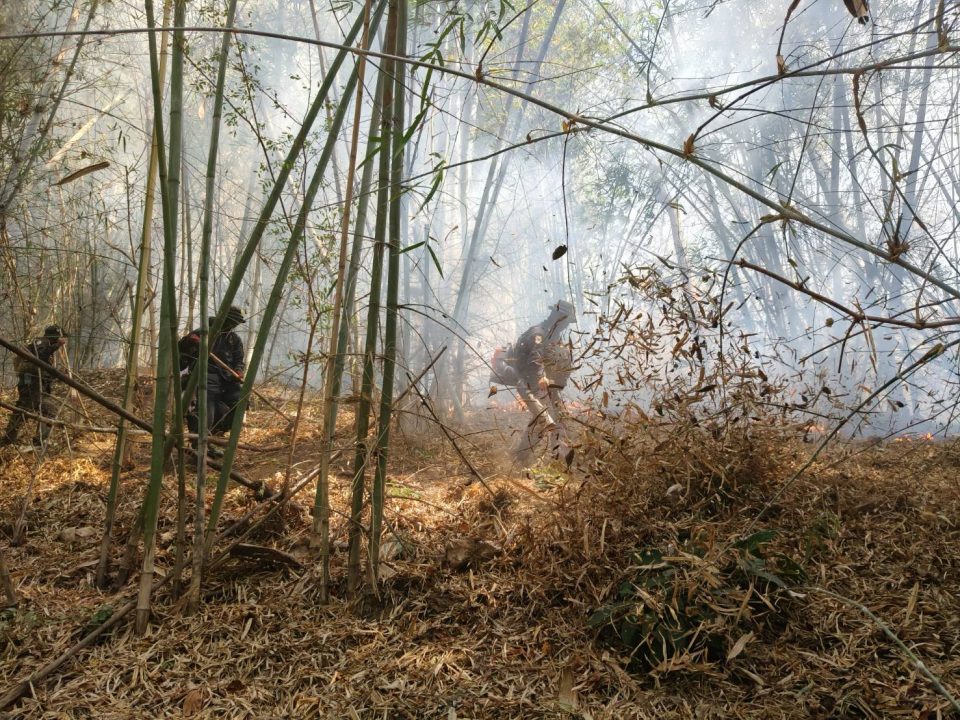 ซึ่งทางเจ้าหน้าที่ได้บูรณาการจากการสนับสนุนอากาศยานเฮลิคอปเตอร์หมายเลข ทส 1110 จากศูนย์เทคโนโลยีดิจิทัลและอากาศยาน สำนักงานปลัดกระทรวงทรัพยากรธรรมชาติและสิ่งแวดล้อม ในการบินสำรวจสถานการณ์ไฟป่า โดยได้บินทิ้งน้ำ รวม 5 เที่ยวบินๆละ 500 ลิตร สำหรับเจ้าหน้าที่ที่ร่วมปฎิบัติงานประกอบด้วยเจ้าหน้าที่อุทยานแห่งชาติทองผาภูมิ เจ้าหน้าที่สำนักจัดการทรัพยากรป่าไม้ที่ 10 (ราชบุรี) ประกอบด้วย หน่วยป้องกันรักษาป่าที่ กจ.3 (พุถ่อง) กจ.4 (อู่ล่อง) และกรมป่าไม้ ได้จัดกำลังพลภาคพื้นดินเข้าพื้นที่เพื่อดับไฟป่าแล้วทั้ง 3 จุด