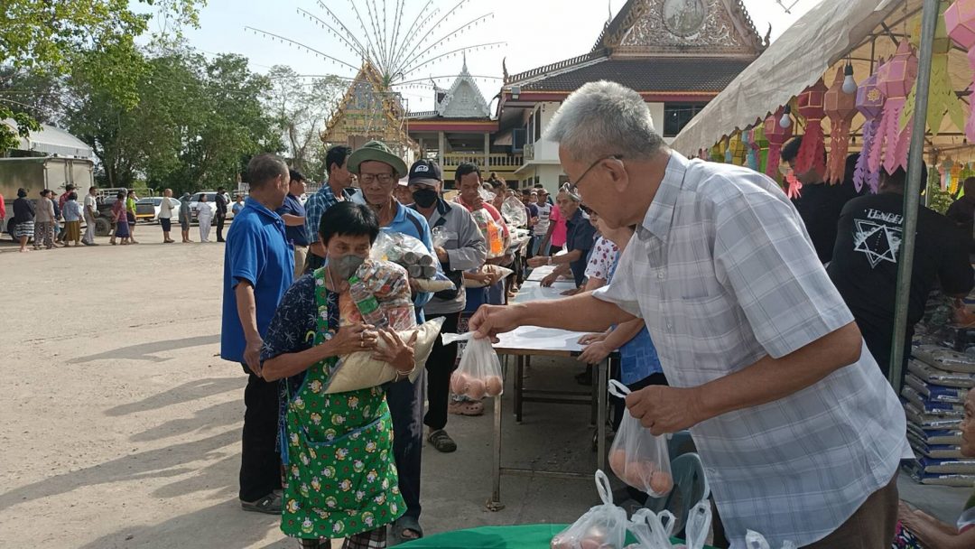 นางสมจิตร ดอนงัว ชาวบ้านที่มารับแจกทานกล่าวว่า รู้สึกดีใจที่ได้รับของแจกจากทางเจ้าภาพที่ทำบุญอุทิศส่วนกุศลให้กับบรรพบุรุษที่ล่วงลับไปแล้ว และได้แจกทานให้กับประชาชนโดยทั่วไป ขอขอบคุณเจ้าภาพ เจ้าภาพใจดีแจกทานทุกปี