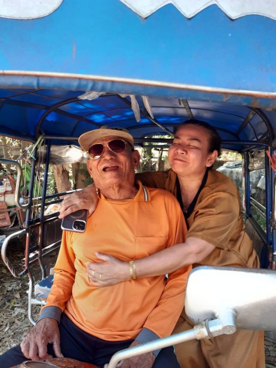 @chaijexu สกลนคร ชีวิตจริงยิ่งกว่านิยายสาวเจอหน้าพ่อในรอบ 50 ปี นางกฤษณา สายคำวงศ์ หรือแดง อายุ 56 ปี บ้านเลขที่ 20/77 ม.5 ต.คลองสอง อ.คลองหลวง จ.ปทุมธานี เดินทางพร้อมด้วยสามีซึ่งรับราชการเป็นตำรวจ ไปที่บ้านเลขที่ 71 ม.4 ต.มาย อ.บ้านม่วง จ.สกลนครเพื่อพบกับนายประเสริฐ สายคำวงศ์ อาย 85 ปี ผู้เป็นพ่อหลังจากไม่ได้เจอหน้ากันมานานถึง 50 ปี การมาได้เจอพ่อทำให้รู้สึกดีใจมากเพราะชาตินี้ไม่คิดว่าจะได้เจอเรียกว่าปาฏิหารย์มีจริง หรือฟ้ามีตาก็ว่าได้ นางกฤษณา กล่าว่า เมื่อก่อนมีอาชีพหิ้วหม้อขายโดยเร่ไปเรื่อยๆ ตอนนั้นตนมีอายุประมาณ 6 ขวบ แม่อายุ 29 ปี แต่หลังจากนั้นพ่อก็หายไปจากชีวิตของแม่ไม่ทราบเป็นตายร้ายดี ซึ่งแม่ก็บอกแต่ว่าพ่อตายไปนานแล้ว เมื่อปี 2566 แม่ได้ถึงแก่กรรม หลังจากนั้นจึงติดว่าจะลองหาพ่อดู โดยให้สามีที่เป็นตำรวจติดต่อกับเพื่อนที่เป็นตำรวจที่สกลนคร คือ ด.ต.อิทธิพงษ์ ฮ่มป่า ผบ.หมู่ กก.2 บก.ส.1 ทำการหาข่าวเชิงลึกจนทราบว่านายประเสริฐ ฯ ยังมีชีวิตอยู่ จึงได้ให้สายตรวจ สภ.บ้านม่วง ไปตรวจสอบที่บ้านดูและเห็นว่ายังมีชีวิตอยู่จริง นำไปสู่การพบกันครั้งนี้ “ก็รู้สึกดีใจเพราะไม่ได้ดจอกันนาน ถามว่าดีใจไหมก็ดีใจอยู่ แต่ความผูกพันไม่เท่าไรเพราะเราคิดว่าไม่มีพ่อมาตั้งแต่เด็ก ตอนเป็นนักเรียนเมื่อถึงวันพ่อทีไรก็มักจะร้องไห้เหมือนขาดอะไรสักอย่างจนคุณครูบอกว่าจะเป็นพ่อให้ แต่ตอนนี้เรามีพ่อแล้ว พ่ออยากได้อะไรอยากกินอะไรก็ซื้อให้หมด นี่ก็เอาผ้าห่มและหมอนข้างมาไว้ให้พ่อเวลาคิดถึงลูกสาวคนโตก็จะได้กอด วันพ่อปีนี้ยังไม่ได้คิดว่าจะเอาอะไรให้ ก็คงจะได้มาเยี่ยมบ่อยๆหรือโทรหากันมากขึ้น เพราะเราก็มีงานมีธุรกิจต้องดูแล ส่วนพ่ออายุ 85 ยังแข็งแรง แม้จะมีครอบครัวใหม่แต่สายเลือดก็คือสายเลือดเราจะไม่ทิ้งกัน” นางกฤษณา กล่าว วัฒนะ แก้วก่า/สกลนคร