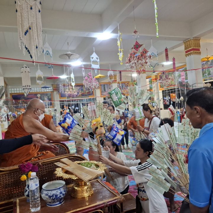 นางสวาท กล่าวอีกว่า นอกจากนี้พี่น้องประชาชนทุกครัวเรือนที่มาทำบุญ ก็จะมีการ “จกกัณฑ์” หรือจับสลากกัณฑ์เทศน์มหาชาติจำนวน 13 กัณฑ์ที่จัดเตรียมไว้ เพื่อเสี่ยงดวงหรือทำนายโชคชะตาราศีในรอบปีนี้ว่าจะเป็นอย่างไร จับสลากได้กัณฑ์ไหน ซึ่งพระพุทธองค์หรือองค์พระสัมมาสัมพุทธเจ้าได้ทรงทำนายไว้หรือเทศนาไว้ ทั้งนี้ เพื่อที่จะให้พุทธศาสนิกชนได้รำลึกนึกถึงแนวทางพระพุทธองค์ และจะได้ไม่ประมาทในการดำเนินชีวิต