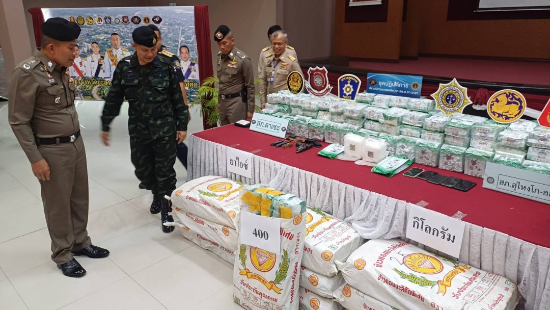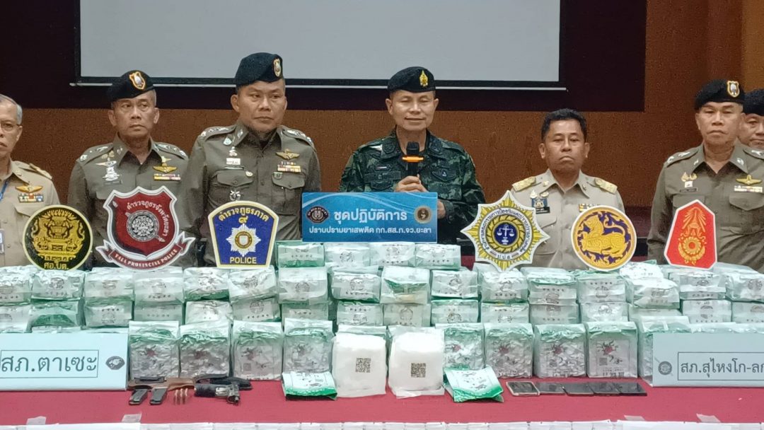 ที่ ห้องประชุมสามัคคี ตำรวจภูธรจังหวัดยะลา พลโท.นรธิป โพยนอก แม่ทัพภาคที่ 4 / ผู้อำนวยการรักษาความมั่นคงภายในภาค 4 พร้อมด้วย พล.ต.ท.ปิยะวัฒน์ เฉลิมศรี ผู้บัญชาการตำรวจภูธรภาค 9 นายอำนาจ ชูทอง รอง ผู้ว่าราชการจังหวัดยะลา นายนันทพงษ์ สุวรรณรัตน์ รองเลขาธิการ ศูนย์อำนวยการบริหารจังหวัดชายแดนภาคใต้ นายวันอุสมาน ลาเต๊ะ ผอ.ส่วนตรวจสอบทรัพย์สิน สำนักงานป้องกันปราบปรามเสพติดภาค 9 และ เจ้าหน้าที่ชุดจับกุม ร่วมแถลงผลการปฏิบัติการกวาดล้างเครือข่ายยาเสพติดรายใหญ่ จับกุมผู้ต้องหา จำนวน 3 ราย พร้อมของกลางไอซ์ 400 กิโลกรัม และอาวุธปืน มูลค่าความเสียหายทางเศรษฐกิจกว่า 72 ล้านบาท