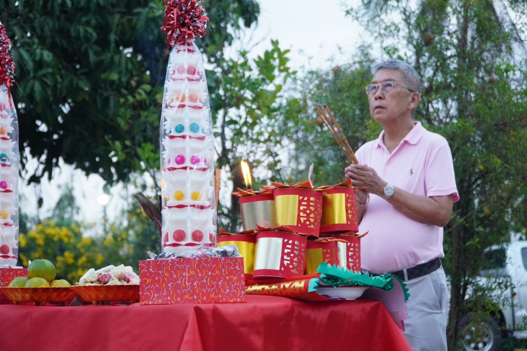 บรรยากาศ ช่วงเทศกาลตรุษจีน ประจำปี 2569 ซึ่งในวันนี้ถือเป็นวันที่ชาวจีนทั่วโลก จะทำพิธีไหว้ “ทีกงแซ” ซึ่งตามตำราจีนถือเป็นวันประสูติของเทพยดาฟ้าดิน โดยชาวไทยเชื้อสายจีนจะมุ่งเข้าศาลเจ้าเพื่อกราบไหว้ขอพรเพื่อเป็นมงคลชีวิต สำหรับเริ่มต้นในเทศกาลปีใหม่ของชาวจีน โดยที่ร้านก๋วยเตี๋ยวลูกชิ้นปลานายเงี๊ยบ สาขาพุทธมณฑล สาย 4 นายสมชาติ สาลีพัฒนา หรือเจ้าสัวเงี๊ยบ เจ้าของกิจการ ยังคงสืบสานพิธีดังกล่าวไว้ตามความเชื่อที่ได้รับการปลูกฝังมาตั้งแต่บรรพบุรุษ จึงได้จัดพิธีไหว้ “ทีกงแซ” หรือเรียกอีกอย่างว่าวัน “ชิวเก้า” โดยได้นำเครื่องเซ่นไหว้บูชา มาบูชาที่ลานกลางแจ้งภายในลานจอดรถของร้าน เพื่อบูชาเทพยดาฟ้าดินซึ่งถือว่าเป็นเทพองค์สูงสุด นอกจากนี้ยังคงกราบไหว้บูชาสิ่งศักดิ์สิทธิ์ภายในร้านจนครบถ้วน จากนั้นได้นิมนต์คณะสงฆ์วัดไผ่ล้อมพระอารามหลวง จังหวัดนครปฐม นำ เพื่อทำพิธีทำบุญใส่บาตรและถวายสังฆทาน และอุทิศส่วนกุศลเพื่อความเป็นสิริมงคลโดยเชิญชวนลูกค้าชาวไทยเชื้อสายจีนเข้าร่วมพิธีร่วมกัน สำหรับ “วันทีกงแซ” หรือวันคล้ายวันประสูติขององค์ฟ้าดิน ตรงกับวันที่ 9 เดือน 1 ตามปฏิทินจันทรคติจีน ซึ่งนับเป็นวันที่ 9 หลังจากวันตรุษจีน โดยปีนี้ตรงกับ วันพุธที่ 25 กุมภาพันธ์ 2569