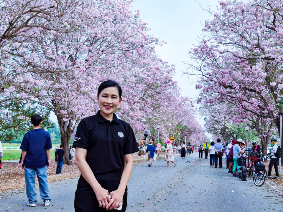 กระแสการท่องเที่ยว ชนความงดงามฤดูกาล ชมพูพันธ์ทิพย์ บานสะพรั่ง ได้รับความยนิมจากนั่งท่องเที่ยวทั่วประเทศ โดยนางสาวอโรชา นันทมนตรี ผู้ว่าราชการจังหวัดนครปฐม ได้เข้าเยี่ยมชมบรรยากาศดอกชมพูพันธุ์ทิพย์ที่กำลังบานสะพรั่ง ณ มหาวิทยาลัยเกษตรศาสตร์ วิทยาเขตกำแพงแสน จังหวัดนครปฐม การเยี่ยมชมครั้งนี้ได้รับการต้อนรับจาก รองศาสตราจารย์ นายสัตวแพทย์ ดร.อนุชัย ภิญโญภูมิมินทร์ รองอธิการบดีวิทยาเขตกำแพงแสน พร้อมคณะผู้บริหาร โดยได้ร่วมชมความงดงามของดอกชมพูพันธุ์ทิพย์ บริเวณถนนวัฒนา เสถียรสวัสดิ์ หน้าโรงเรียนสาธิตฯ ซึ่งเป็นจุดไฮไลต์สำคัญของ เทศกาลชมพูพันธุ์ทิพย์ ประจำปี 2569 ที่จัดขึ้นระหว่างวันที่ 11 กุมภาพันธ์ – 2 มีนาคม 2569 โดยมีนักท่องเที่ยวมาเที่ยวชมความงามเป็นจำนวนมาก โอกาสนี้ ผู้ว่าราชการจังหวัดนครปฐม ได้เข้าเยี่ยมชม ร้าน THE PREMIUM @ KU KPS (KASETATION) ศูนย์การเรียนรู้นวัตกรรมเกษตร ซึ่งมีสินค้าคุณภาพที่น่าสนใจหลายรายการ โดยขอเชิญนักท่องเที่ยวเข้าเยี่ยมชมดอกชมพูพันธ์ทิพย์ และช๊อปของดีมีคุณภาพ กับเวลาที่ยังมีการจัดงาน ณ ขณะนี้