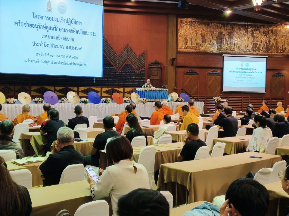 การอบรมเชิงปฏิบัติการเครือข่ายอนุรักษ์ดูแลรักษามรดกทางศิลปวัฒนธรรม เขตภาคเหนือตอนบน ประจำปีงบประมาณ พ.ศ. 2569 จัดขึ้นระหว่างวันที่ 26 – 28 กุมภาพันธ์ 2569 ณ จังหวัดเชียงใหม่ โดยมีการบรรยายเสริมสร้างความรู้ ความเข้าใจในบทบาทหน้าที่ของเครือข่ายอนุรักษ์ ความรู้เกี่ยวกับแนวทางและมาตรฐานในการดูแลรักษามรดกทางศิลปวัฒนธรรมด้านโบราณสถาน ศิลปกรรมในเขตโบราณสถาน และโบราณวัตถุ ศิลปวัตถุ ตลอดจนมรดกทางศิลปวัฒนธรรมอื่นๆ ส่งเสริมให้เล็งเห็นคุณค่าและความสำคัญของมรดกทางศิลปวัฒนธรรมที่มีต่อชาติและท้องถิ่น รวมถึงความรู้ด้านกฎหมาย กฎ ระเบียบที่เกี่ยวข้อง ภายใต้หน้าที่และความรับผิดชอบของกรมศิลปากร โดยวิทยากรผู้ทรงคุณวุฒิ นอกจากนี้ยังนำผู้เข้าร่วมอบรมศึกษาดูงานการบูรณะโบราณสถานในพื้นที่จังหวัดเชียงใหม่อีกด้วย