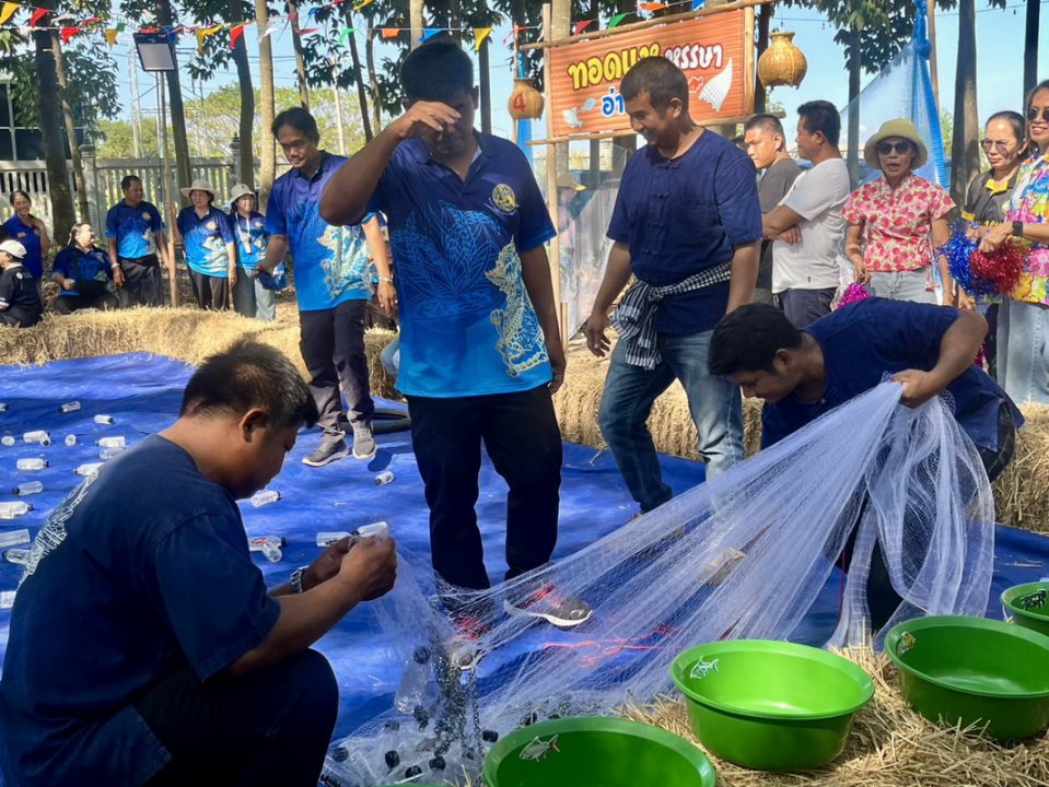 งานนี้ปลาเต็มบ่อ ทั้งปลาช่อน สวาย ทับทิม ตะเพียนทอง กบ กุ้ง จระเข้ก็ยังมา แต่มาแบบบรรจุขวดนะจ๊ะ ไม่มีน้อง ๆ ต้องเจ็บตัว นอกจากคนที่ต้องเจ็บใจ เพราะทอดแหแต่ได้หอยจ้า เซียนอำเภอไหนกวาดปลาได้แต้มเยอะสุด คว้าเงินรางวัลไปเลย