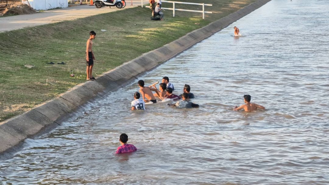 อากาศมันร้อน พบว่ามีชาวบ้านพาลูกหลานเล่นน้ำในคลองชลประทานคลายร้อน บริเวณคลองชลประทาน ริมถนนวิเศษชัยชาญ – โพธิ์ทอง ตั้งแต่สี่แยกไฟแดงไปจนถึงหน้าวัดคูมะนาวหวาน เป็นระยะทางกว่า 3 กิโลเมตร