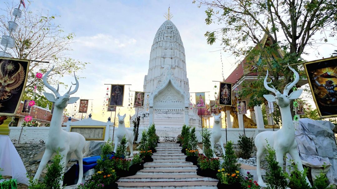 ที่วัดเขารักษ์ ตำบลดอนแสลบ อำเภอห้วยกระเจา จังหวัดกาญจนบุรี เป็นวัดเก่าแก่อายุ 200 กว่าปี ที่ยอดเขารักษ์มีพระปรางค์ ขนาดใหญ่คล้ายฝักข้าวโพด สูงตระง่าน สร้างในช่วงสมัยอยุธยาตอนต้น มีทางขึ้นเป็นบันได 300 กว่าขั้น สองข้างทางขึ้นลงจะมีรูปปั้นพญานาคด้านซ้ายขวา และประดับตกแต่งให้สวยงาม ตลอดทางขึ้นลง