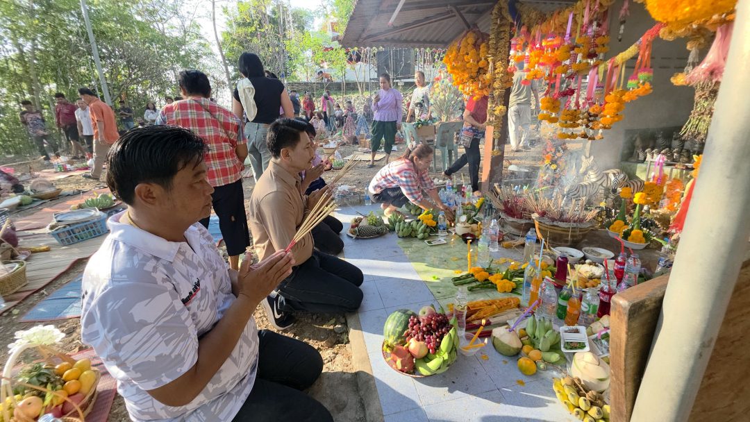 ทางด้าน นายเผอิญ แก่นจันทร์ นายกองค์การบริหารส่วนตำบลดอนแสลบ มาพร้อมกับชาวบ้านเดินขึ้นมา มีชาวบ้านและผู้นำในท้องถิ่นต้อนรับ จากนั้นได้สักการะพระปรางค์เขารักษ์ เพื่อเป็นสิริมงคลในการเข้ามาบริหารท้องถิ่นครั้งแรก พร้อมกับเตรียมประทัดสองหมื่นนัด โดยวางประทัดยาวตั้งแต่บันไดขั้นแรกขึ้นมาถึงยอดพระปรางค์ เมื่อจุดประทัดแล้วจนถึงลูกสุดท้าย มีหางประทัดสีแดง มีข้อความว่า “การงานรุ่งเรือง 238, 69 และหางประทัดสีแดงอีกชิ้น มีข้อความว่า “สมหวัง ราบรื่น” 350, 95 ชาวบ้านต่างมามุงดูถ่ายภาพไว้