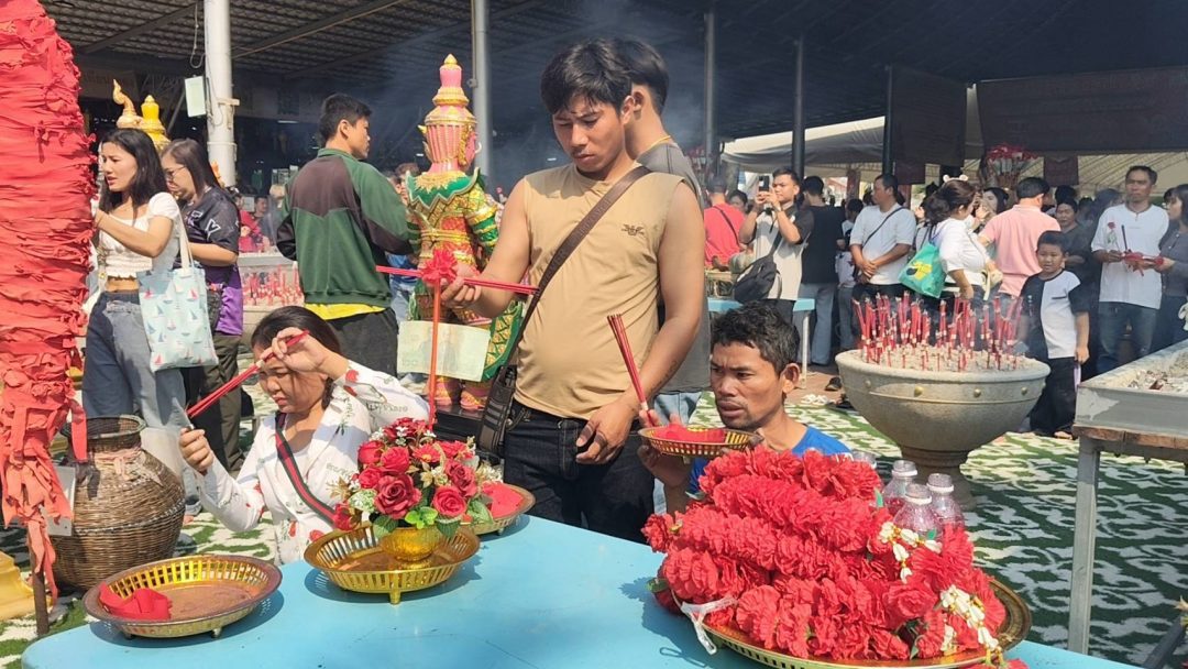 ทางด้านนายชัยชีนะ ชาวไทใหญ่ นำน้ำแดง 1 แพค น้ำดื่ม 1 แพคพร้อมเครื่องเซ่นไหว้เดินทางมาแก้บนท้าวเวสสุวรรณ หลังโชคดีได้รับโชคลาภเป็นครั้งแรก นายชัยชีนะ เล่าว่าตนเป็นแรงงานรับจ้างมำทำงานอยู่ย่านคลองแปด และเป็นครั้งแรกที่ได้รับโชคลาภจากการมาไหว้ขอพรกับท้าวเวสสุวรรณ ซึ่งถือว่าประสบความสำเร็จตั้งแต่ครั้งแรก ในการมาครั้งแรกตั้งใจมาเพื่อทำบุญเป็นหลัก ไม่ได้คาดหวังหรือร้องขอสิ่งใด เมื่อมาแก้บนครั้งนี้ทำให้ตนรู้สึกภูมิใจและสบายใจมากขึ้น ส่วนเงินที่ได้ตนจะเอาไว้ใช้จ่ายในครอบครัวและทำบุญต่อไปเรื่อยๆ และก่อนกลับได้จุดธูปมงคลได้เลข 70 นำกลับไปลุ้นครั้งที่ 2 ต่อไป