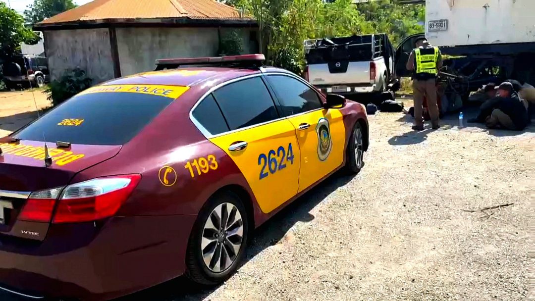 ที่บริเวณใกล้เคียงวัดสามพระยา ตำบลบ้านเก่า อำเภอเมือง จังหวัดกาญจนบุรี จนกระทั่งได้พบรถยนต์ต้องสงสัยลักษณะบรรทุกหนักและใช้ความเร็วสูง ยี่ห้อนิสสัน รุ่นนาวารา สีเทา หมายเลขทะเบียน ถฮ-3045 กรุงเทพมหานคร วิ่งมาบน ทล.3085 เมื่อมาถึงบริเวณวัดสามพระยา เจ้าหน้าที่ตำรวจทางหลวงกาญจนบุรี พร้อมรถวิทยุ 2624 ได้ติดตามรถยนต์คันดังกล่าวมาตามทางหลวงหมายเลข 3085 ต่อเนื่องทางหลวงหมายเลข 3229 จนมาถึง ทล.323 ช่วง กม.76 พบรถยนต์บรรทุกส่วนบุคล ยี่ห้อโตโยต้า รุ่นรีโว่ สีดำหมายเลขทะเบียน บร-4478 กาญจนบุรี ขับขี่ในลักษณะกีดขวางในช่องทางเดินรถเพื่อช่วยเหลือให้รถยนต์ต้องสงสัยให้พ้นจากการจับกุม จนมาถึงบริเวณทล.323 ช่วงกม.73-74 รถวิทยุ 2624 ได้ใช้สัญญาณเสียงให้รถบรรทุกพ่วงที่สัญจรในเส้นทางให้ช่วยปิดกั้นมิให้รถยนต์คันหมายเลข บร-4478 กาญจนบุรี เพื่อเปิดทางให้รถวิทยุ 2624 ติดตามรถยนต์ต้องสังสัยคันหมายเลข ถฮ-3045 กรุงเทพมหานคร จนมาถึงจุดกลับรถช่วงกม.71-72 ผู้ขับขี่รถได้ขับขี่ย้อนเส้นทางเดินรถหลบเข้าบริเวณบ้านเช่าไม่มีเลขที่ เจ้าหน้าชุดจับกุมได้ติดตามไปจนพบรถยนต์ยี่ห้อนิสสัน รุ่นนาวาร่า หมายเลขทะเบียน ถฮ-3045 กรุงเทพมหานคร จอดอยู่ภายในบริเวณบ้านเช่า พบผู้ขับขี่และบุคคลที่โดยสารมากับรถคันดังกล่าวพากันวิ่งหลบหนีเข้าป่าหญ้าหลังบ้านเช่าหลังหนึ่ง