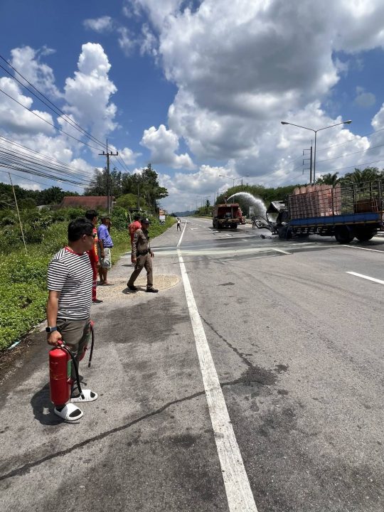 ตำรวจ สถานีตำรวจภูธรทับปุด ได้รับแจ้งจากศูนย์ 191 พังงา ว่าเกิดเหตุเพลิงไหม้รถบรรทุก 6 ล้อ บนถนนเพชรเกษม บริเวณจุดยูเทิร์นหน้าร้านแม่กิมขั้น หมู่ที่ 4 ตำบลทับปุด อำเภอทับปุด จังหวัดพังงา หลังรับแจ้งจึงประสานสายตรวจรถยนต์เข้าตรวจสอบ พร้อมประสานรถดับเพลิงจากเทศบาลตำบลทับปุด และเจ้าหน้าที่กู้ภัยมูลนิธิเพชรเกษมเข้าระงับเหตุ ที่เกิดเหตุพบรถบรรทุก 6 ล้อ ยี่ห้อ Isuzu สีฟ้า ทะเบียน 80-3617 พังงา ถูกเพลิงลุกไหม้ เจ้าหน้าที่ดับเพลิงจึงเร่งฉีดน้ำควบคุมเพลิงจนสามารถดับไฟไว้ได้ในเวลาต่อมา