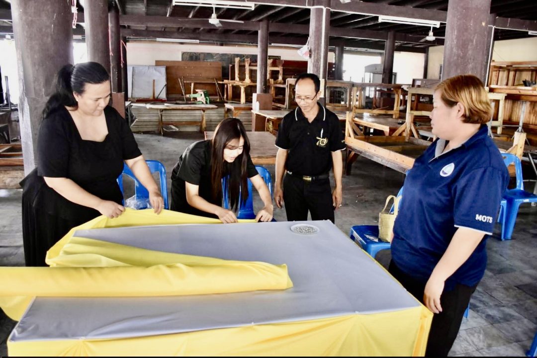 การขับเคลื่อนโครงการส่งเสริมสนับสนุนการอนุรักษ์ฟื้นฟูฯ การอบรมการผูกผ้าประดับในงานพิธีฯ มีความสำคัญในการตกแต่งสถานที่ให้สวยงามและเป็นระเบียบเรียบร้อยช่วยสร้างบรรยากาศที่เหมาะสมกับงานพิธีต่าง ๆ เช่นงานมงคล งานทางศาสนา หรือพิธีสำคัญของชุมชน นอกจากนี้ยังสะท้อนถึงวัฒนธรรม ประเพณี อันดีงามของไทย การผูกผ้าประดับมักใช้เทคนิคต่าง ๆ เช่นการจับจีบผ้า การทำระบายผ้า การผูกโบว์ หรือการตกแต่ง รอบเวที โต๊ะหมู่บูชา เสา และทางเดิน เพื่อให้สถานที่ดูโดดเด่นและเป็นสัดส่วน นอกจากนี้ยังสะท้อนถึงความประณีตและความเคารพต่อพิธีการ ดังนั้น การผูกผ้าประดับในงานพิธีจึงมีความสำคัญทั้งในด้านความสวยงาม การสร้างบรรยากาศ และการสืบสานวัฒนธรรมประเพณีไทยให้คงอยู่สืบไป