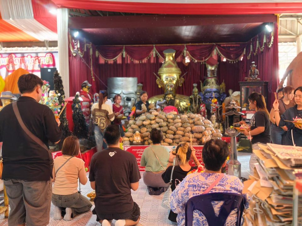 ที่อาศรมฤาษีเณร ธาตุพุทธคุณ บริเวณถนนวงแหวนตะวันตกหมายเลข 9 ประชาชนจำนวนมากใช้เวลาช่วงวันหยุดเดินทางมากราบไหว้ขอพรสิ่งศักดิ์สิทธิ์ เพื่อความเป็นสิริมงคลและแสวงหาโชคลาภตามความเชื่อโดยตลอดทั้งวันมีประชาชนต่อแถวเข้าร่วมพิธีถวายพานผลไม้ และทำพิธีห่มผ้าเสือองค์ปู่ฤาษีพรหมเมศปางมหาเศรษฐี (องค์ใหญ่ที่สุดในโลก) พร้อมให้ อาจารย์ฤาษีเณร ธาตุพุทธคุณ ทำพิธีลง “นะพระลักษณ์หน้าทอง” และเจิมมือเปิดดวงเศรษฐี เพื่อให้การงานการค้าเจริญรุ่งเรือง