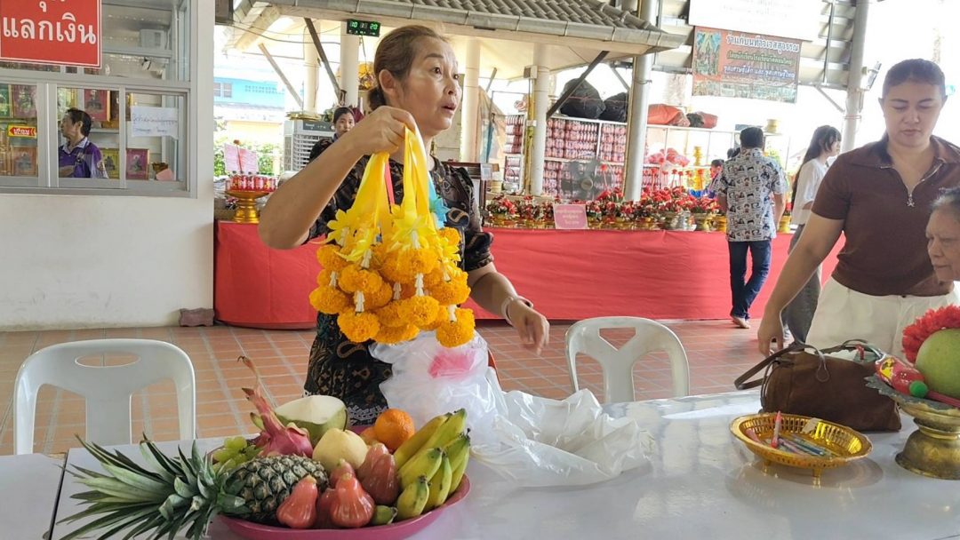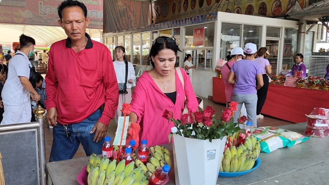 ทางด้านนางสาวสำเร็จ ไข่ระวี นำกล้วยน้ำว้า 9 หวี น้ำแดง 9 ขวด กุหลาบ 9 ดอก เดินทางมาจากย่านประเวศ กทม. มาแก้บนกับท้าวเวสสุวรรณหลังได้เงินโอนคืน 30,000 กว่าบาท นางสาวสำเร็จกล่าวว่าตนเองประกอบอาชีพทำต้นไม้และดอกไม้ประดิษฐ์ ใช้ชื่อเพจว่า “ช่างแหลมต้นไม้ประดิษฐ์” รับจ้างทำดอกไม้ประดิษฐ์ส่งมอบให้กับผู้ที่ต้องการทั่วไป วันหนึ่งตนได้สั่งซื้อดอกไม้ประดิษฐ์มาเป็นจำนวนมากเพื่อไปมาทำต้นไม้ประดิษฐ์ให้ลูกค้าที่ภูเก็ตแต่ปรากฎว่าสินค้าที่ส่งมาไม่ตรงปกจึงตีคืนสินค้าไปแต่ไม่มีผลตอบรับกลับมาเป็นเวลานานมาก ตนเองจึงเกิดความรู้สึกกังวลใจและร้อนใจเป็นอย่างมาก เพราะตนไม่มีหลักฐานอะไรนอกจากบัญชีการโอนเลยกลัวว่าเขาจะไม่คืน ตนจึงได้เดินทางมาขอพรกับท้าวเวสสุวรรณ ว่าขอให้ได้เงินที่โอนไปคืน ซึ่งก่อนหน้านี้ตนได้มาขอพรกับท้าวเวสสุวรรณในเรื่องโชคลาภก็โชคดีมาหลายงวดแล้ว ผลปรากฏว่าหลังจากที่ตนได้ขอพรไปแค่ข้ามคืนไม่ถึงวัน (ขอพร23 มีค.ได้ 24 มีค.69) เจ้าของสินค้าดอกไม้ประดิษฐ์ก็โอนเงินมาให้ตน 7,000 บาทก่อน ตนจึงนำเงินไปซื้อดอกไม้ประดิษฐ์ แล้วรีบนำไปติดตั้งให้กับลูกค้าที่ภูเก็ตเพราะลูกค้าได้โทรมาเร่ง ว่าจะถึงวันที่กำหนดส่งมอบสินค้าแล้ว พอรุ่งขึ้นอีกวัน(25 มีค.69) เจ้าของสินค้าก็โอนเงินที่เหลือมาอีก 23,500 บาทกลับคืนมา ตนเองรู้สึกดีใจเป็นอย่างมาก วันนี้ตนได้ติดตั้งต้นไม้ประดิษฐ์ให้ลูกค้าที่ภูเก็ตเสร็จแล้ว ตนจึงรีบเดินทางกลับมาแก้บนกับท้าวเวสสุวรรณดังกล่าว และก่อนกลับยังได้จุดธูปเสี่ยงทายได้เลข 59 – 677 นำกลับไปลุ้นโชคอีกต่อด้วย