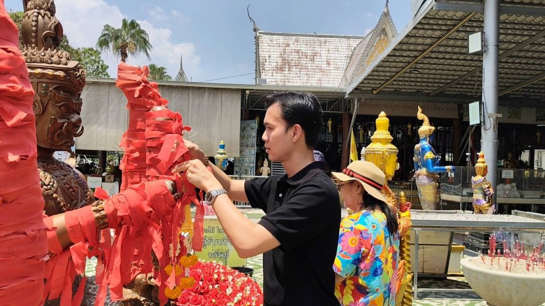 @chaijexu ปทุมธานี 2 สาวรีบแก้บนท้าวเวสฯหลังดลได้เลื่อนตำแหน่งได้ 2 ล้านบาท ขอพรแค่ข้ามคืนได้เงินคืน 30,000 กว่าบาท ที่วัดดอนใหญ่ คลอง 8 ตำบลลำลูกกา อำเภอลำลูกกา จังหวัดปทุมธานี ได้คึกคักเป็นพิเศษ มีประชาชนสายบุญและสายมูเดินทางมาจากหลายพื้นที่อย่างต่อเนื่องตลอดทั้งวัน เพื่อมาแก้บนและขอพรกับท้าวเวสสุวรรณ ไอ้ไข่วัดดอนใหญ่ สายมูส่วนใหญ่จะอยู่ที่ท้าวเวสสุวรรณที่ให้โชคลาภ การเงิน การงาน สมหวังกันมาแล้วหลายราย ในท่ามกลางบรรยากาศที่เต็มไปด้วยความหวังและความศรัทธา ซึ่งส่วนใหญ่สายมูที่เดินทางมาต่างตั้งใจมาขอพรเรื่องโชคลาภ เนื่องจากใกล้ช่วงเทศกาลสงกรานต์ หลายคนหวังว่าจะมีโชคมีลาภเพื่อนำเงินไปใช้จ่าย ในการเดินทางกลับภูมิลำเนา และเป็นทุนในการใช้ชีวิตประจำวัน บางส่วนก็อยากให้ราคาน้ำมันลดลง ด้านนางสาวทิตยาภรณ์ ทองฤิทธิ์ ได้เดินทางมาจากย่านคูคต คลองสอง นำผลไม้ 9 อย่าง พวงมาลัย 9 พวงมาและเครื่องเซ่นไหว้มาแก้บนกับท้าวเวสสุวรรณหลังสมหวังได้เลื่อนตำแหน่งตามที่ขอพรไว้ นางสาวทิตยาภรณ์กล่าวว่าตนประกอบอาชีพตัวแทนประกันชีวิต ตนได้ตั้งใจขอพรกับท้าวเวสสุวรรณไว้เกี่ยวกับความก้าวหน้าในหน้าที่การงานและรายได้ ตนนั้นขอไว้ว่าขอให้ได้เลื่อนตำแหน่งเป็นผู้จัดการ และมีรายได้มากกว่า 2 ล้านบาท หลังจากขอพรไปไม่นานก็เป็นไปตามที่ตนได้ขอพรไว้ทุกประการ และที่น่าดีใจยิ่งกว่านั้นนอกจากตนได้สมใจแล้ว พรนั้นยังส่งผลถึงลูกสาวของตนด้วยที่สามารถคว้าคุณวุฒิ MDRT ซึ่งเป็นมาตรฐานระดับสากลของอาชีพตัวแทนประกันชีวิตได้สำเร็จอีกด้วย ซึ่งในช่วงแรกสถานการณ์ของลูกสาวจะดูค่อนข้างยาก เนื่องจากยังขาดเบี้ยประกันอีกเกือบ 700,000 บาท แต่หลังจากมาขอพร ทุกอย่างกลับราบรื่น และสามารถทำได้ครบตามเป้าหมาย วันนี้ตนได้ประสบความสำเร็จตามที่หวังไว้แล้วทุกอย่าง ตนจึงได้นำผลไม้ 9 อย่าง และพวงมาลัย 9 พวงมาถวายเพื่อแก้บนกับท้าวเวสสุวรรณดังกล่าว ซึ่งตนรู้สึกว่าได้ทุกอย่างตามที่ขอไว้แล้ว ต้องรีบกลับมาแก้บน เพราะหากไม่มาเหมือนจะมีสิ่งค้างคาอยู่ในใจ และก่อนกลับยังได้จุดธูปเสี่ยงทายได้เลข 43 นำกลับไปลุ้นโชคอีกด้วย ทางด้านนางสาวสำเร็จ ไข่ระวี นำกล้วยน้ำว้า 9 หวี น้ำแดง 9 ขวด กุหลาบ 9 ดอก เดินทางมาจากย่านประเวศ กทม. มาแก้บนกับท้าวเวสสุวรรณหลังได้เงินโอนคืน 30,000 กว่าบาท นางสาวสำเร็จกล่าวว่าตนเองประกอบอาชีพทำต้นไม้และดอกไม้ประดิษฐ์ ใช้ชื่อเพจว่า “ช่างแหลมต้นไม้ประดิษฐ์” รับจ้างทำดอกไม้ประดิษฐ์ส่งมอบให้กับผู้ที่ต้องการทั่วไป วันหนึ่งตนได้สั่งซ