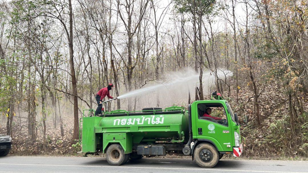 เมื่อไปถึงบริเวณเทือกเขาด้านทิศตะวันตกของถนนสายเลี่ยงเมืองพบว่ามีไฟป่าลุกลามจากบนยอดเขาลงมาบริเวณแนวถนนสายเลี่ยงเมือง ทางเจ้าหน้าที่จึงเร่งระดมกำลังดับไฟป่ารวมไปถึงรถบรรทุกน้ำของกรมป่าไม้ที่คอยฉีดน้ำเลี้ยงพื้นที่เพื่อป้องกันไฟป่าลุกลามเข้าสู่บ้านเรือนราษฎรที่อยู่ใกล้เคียง หลังจากใช้เวลาประมาณ 40 นาทีจึงสามารถควบคุมไฟป่าได้สำเร็จ พื้นที่ป่าเสียหายจากไฟป่าประมาณ 5 ไร่ ปัจจุบันพบว่าการลักลอบเผาป่า ส่วนใหญ่จะเป็นพื้นที่เขตป่าสงวน ที่อยู่ติดกับชุมชน และเป็นพื้นที่เก็บหาของป่า ของชุมชนมาเนิ่นนาน ถึงแม้ว่าทางจังหวัดจะมีคำสั่งห้ามเผาป่าอย่างเด็ดขาดแต่ก็ยังมีการลักลอบเผาป่าอย่างต่อเนื่อง