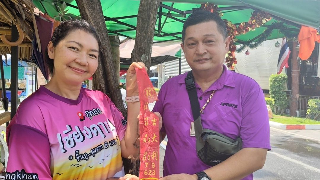 ด้านนายวราวุฒิ นางสาวศศิธร พฤกษวัน นำประทัด 5,000 นัดพร้อมด้วยเครื่องเซ่นไหว้มาแก้บนท้าวเวสสุวรรณหลังขายบ้านราคากว่าล้านได้สำเร็จ นายวราวุฒิและนางสาวศศิธรกล่าวว่าตนทั้ง 2 คนมาแก้บนท้าวเวสสุวรรณหลังจากประสบความสำเร็จในเรื่องหน้าที่การงาน ซึ่งตนทำงานที่บริษัทTS HAPPYHOME เป็นพนักงานขายบ้านหรือเซลล์ขายบ้านที่รีโนเวทเสร็จแล้วในย่านคลองแปด รังสิต-นครนายก ซึ่งก่อนหน้านี้ตนได้มาขอพรกับองค์ท้าวเวสสุวรรณไว้ว่าหากสามารถปิดการขายบ้านและโอนบ้านให้ลูกค้าได้สำเร็จตนก็จะกลับมาจุดประทัดถวายให้ท่าน นายวราวุฒิยังกล่าวอีกว่าที่ผ่านมาตนและครอบครัวมักจะมาขอพรกับท้าวเวสสุวรรณเฉพาะเวลาที่มีโครงการบ้านหรือทรัพย์สินที่ต้องดูแลในโซนคลองเจ็ดหรือคลองแปด ซึ่งเป็นพื้นที่ที่เชื่อว่าท้าวเวสสุวรรณท่านดูแลปกปักษ์รักษาอยู่ หากครั้งไหนที่สามารถปิดการขายได้ก็จะมาแก้บนด้วยการจุดประทัดถวายเสมอ ซึ่งถ้านับรวมครั้งนี้ด้วยก็ถือว่ามาแก้บนสำเร็จเป็นครั้งที่ 10 กว่าแล้ว และล่าสุดตนเพิ่งจะขายบ้านไปได้อีกหนึ่งหลังจึงรีบเดินทางมาแก้บนท้าวเวสสุวรรณอีกครั้ง เพื่อความเป็นสิริมงคลและเป็นขวัญกำลังใจในการทำงานต่อไป และก่อนกลับยังได้จุดประทัดได้เลข 79 623 นำกลับไปลุ้นโชคอีกต่อด้วย