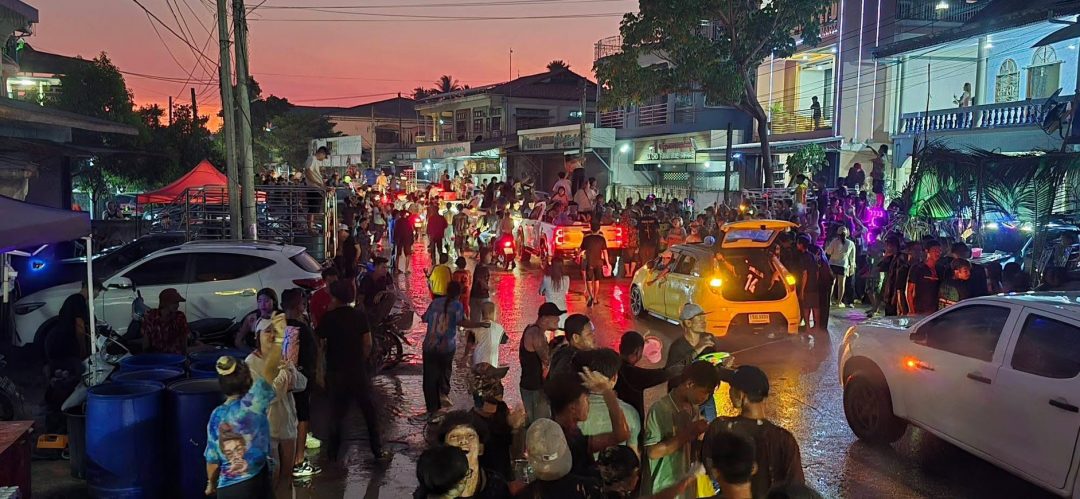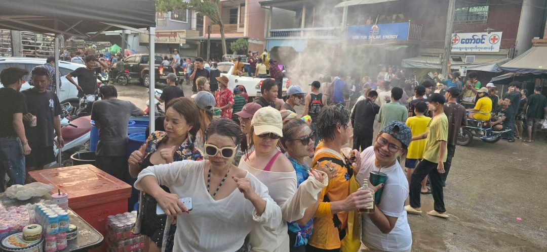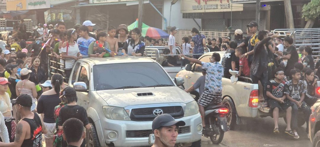 บรรยากาศสงกรานต์ในฝั่งเมืองฝั่งพญาตองซู คึกคักวัยรุ่นทั้งไทยและเมียนมา ออกมาเล่นสาดน้ำ ปะแป้ง เฉลิมฉลองเทศกาลสงกรานต์อย่างคึกคัก ส่งผลให้ถนนหลักของเมืองพญาตองซู จากหน้าด่าน ตม-หน้าสำนักงานชุดประสานงานของ DKBA ระยะทางกว่า 3 กม. เต็มไปด้วยรถยนต์ และผู้คนที่ออกมาเต้น เล่นน้ำสงกรานต์ โดยเจ้าหน้าที่ได้ปล่อยให้ประชาชน และนักท่องเที่ยว ได้สนุกสนานกันอย่างเต็มที่ โดยมีการรักษาความปลอดภัยอยู่ห่างๆ โดยมีชาวไทยข้ามไปเล่นสาดน้ำสงกรานต์ด้วยเช่นกัน และการเล่นน้ำจะมีขึ้นตั่งแต่เวลา 15.30 น. จนถึงเวลา 21.00 น เล่นกันตั้งแต่วันที่ 14 เมษายน สิ้นสุดวันที่ 17 เมษายน นี้