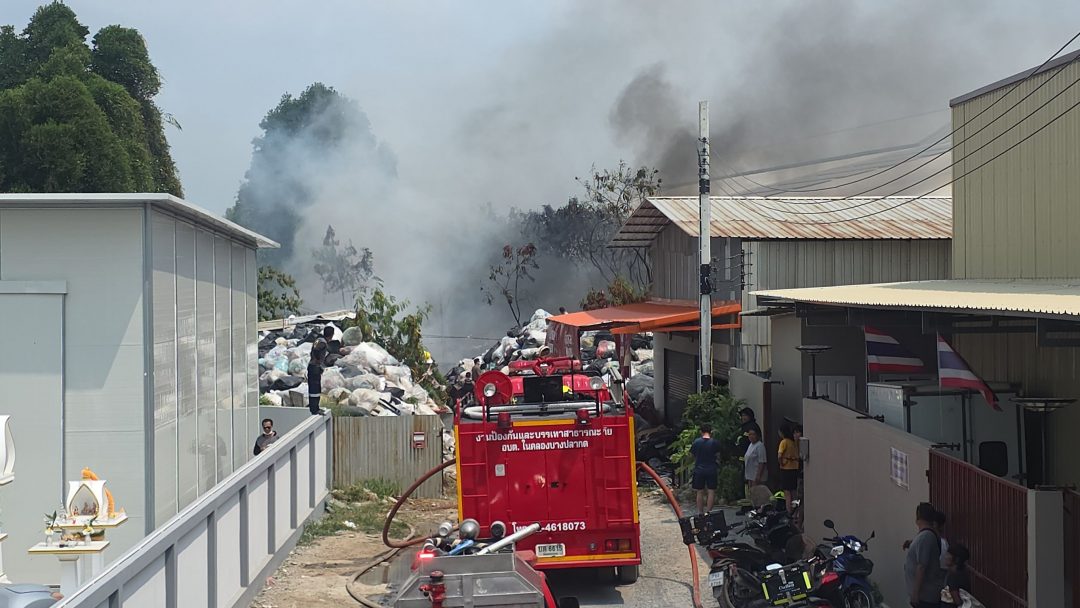 พ.ต.ท.ไชยณัฐ มาพงศ์ พงส.สภ.พระสมุทรเจดีย์ จ.สมุทรปราการ ได้รับเเจ้งว่ามีเหตุเพลิงไหม้สถานที่เก็บขยะรีไซเคิล ตั้งอยู่เลขที่ 568 ริมถนนเรียบคลองส่วย แยกจากซอยสุขสวัสดิ์ 84 ม.10 ต.ในคลองบางปลากด อ.พระสมุทรเจดีย์ จ.สมุทรปราการ จึงประสานของรถน้ำดับเพลิงจาก อบต.ในคลองบางปลากด จำนวน 2 คันและรถอาสาสมัครบรรเทาสาธารณภัย กทม.อีก 4 คัน เร่งเดินทางไประงับเหตุ