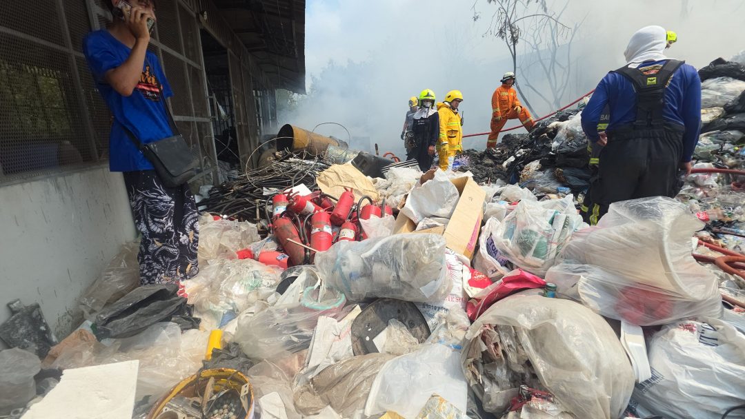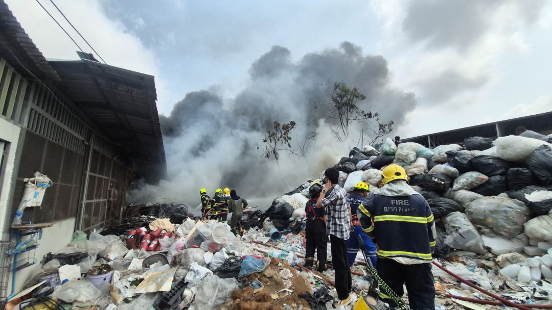 ที่เกิดเหตุเป็นสถานที่คัดแยกขยะรีไซเคิล อยู่บนเนื้อที่ประมาณ 800 ตาราวา มีรั้วรอบขอบชิด พบเพลิงกำลังโหมลุกไหม้กองขยะรีไซเคิลด้านในอย่างรุนแรงประกอบกับมีลมกรรโชกแรงเป็นระยะอีกทั้งมีขยะรีไซเคิลเป็นจำนวนมากซึ่งเป็นเชื้อเพลิงอย่างดี เจ้าหน้าที่ดับเพลิงต่างเร่งลากสายฉีดน้ำเพื่อฉีดสกัดไฟไม่ให้ลุกลามขยายเป็นวงกว้างและติดกองขยะรีไซเคิลที่เหลืออยู่ โดยใช้เวลาว่า 1 ชั่วโมงจึงสามารถควบคุมเพลิงไว้ได้
