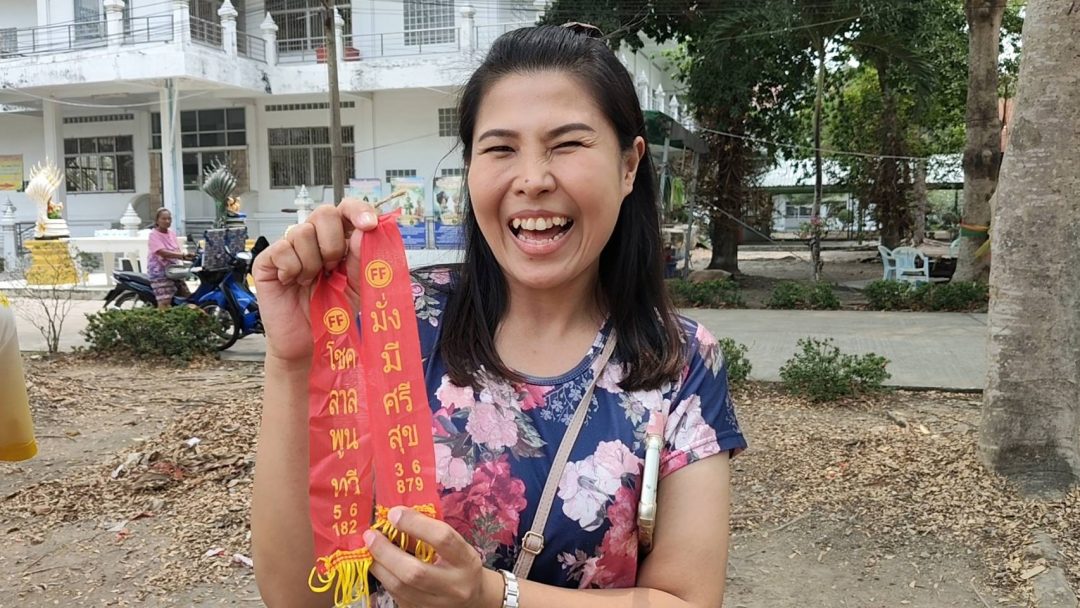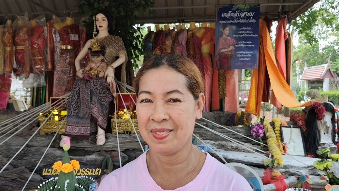 ด้านนางสาววิภา พูนทวี เดินทางมาจากย่านคลอง 7 นำชุดไทย 1 ชุดพร้อมด้วยชุดเครื่องสำอาง ชุดหมากพู ผ้าสามสี และเครื่องเซ่นไหว้มาแก้บนแม่ตะเคียนทอง หลังประสบความสำเร็จได้รับโชคก้อนโตตามที่ขอไว้ นางสาววิภากล่าวว่าก่อนหน้านี้ตนได้มาขอพรกับแม่ตะเคียนทองไว้ว่าขอให้ได้รับเงินจำนวน 30,000 บาท ภายในระยะเวลา 1 เดือน แล้วตอนนี้ตนก็โชคดีถูกรางวัลได้รับเงินมากกว่าที่ขอไว้รวมกว่า 40,000 บาท นางสาววิภายังกล่าวอีกว่าก่อนที่ตนจะเดินทางมามาแก้บนกับแม่ตะเคียนทองนั้น ตนเองได้ฝันเห็นผู้หญิงคนหนึ่งพาเด็กอาบน้ำอยู่ในคลอง แม้มองเห็นใบหน้าไม่ชัดเจน แต่ตนเชื่อว่าเป็นสัญญาณจากแม่ตะเคียนทองที่เตือนว่าถึงเวลาต้องมาแก้บนตามที่ได้บนบานศาลกล่าวไว้แล้ว วันนี้ตนจึงรีบเดินทางมาแก้บนดังกล่าว และก่อนกลับยังได้ล้วงไข่ทำนายได้คำทำนายว่า “มีบางสิ่งที่กำลังจะเข้ามาในชีวิตลูก ขอให้ลูกเปิดใจรับโอกาสใหม่ แล้วจะเห็นความเปลี่ยนแปลง”กับธูปมงคล 1 ดอกจุดแล้วได้เลข 151 นำกลับไปลุ้นเงินหมื่นต่อไป