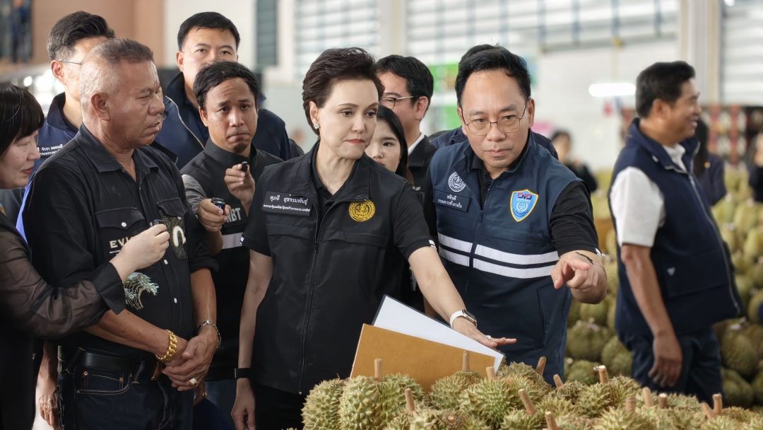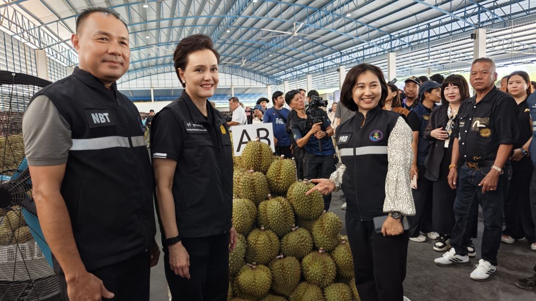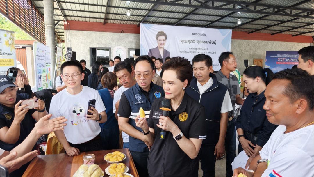 เมื่อวันที่ (25 เมษายน 2569) นางศุภจี สุธรรมพันธ์ รองนายกรัฐมนตรีและรัฐมนตรีว่าการกระทรวงพาณิชย์ ลงพื้นที่จังหวัดจันทบุรี เดินหน้าขับเคลื่อนนโยบาย “ผลไม้คุณภาพ” อย่างเป็นรูปธรรม มุ่งยกระดับสินค้าเกษตรไทยสู่มาตรฐานสากล พร้อมเร่งเครื่องขยายตลาดส่งออกผ่านช่องทางออนไลน์อย่างเต็มกำลัง ช่วงบ่าย รองนายกรัฐมนตรีพร้อมคณะเดินทางไปยัง “สวนอาจารย์สมพงษ์ (ทุเรียน 100 ล้าน)” อำเภอเขาคิชฌกูฏ เพื่อติดตามกระบวนการผลิตทุเรียนคุณภาพส่งออก โดยมีนายมนต์สิทธิ์ ไพศาลธนวัฒน์ ผู้ว่าราชการจังหวัดจันทบุรี และหน่วยราชการภาครัฐ ภาคเอกชน ประชาชน